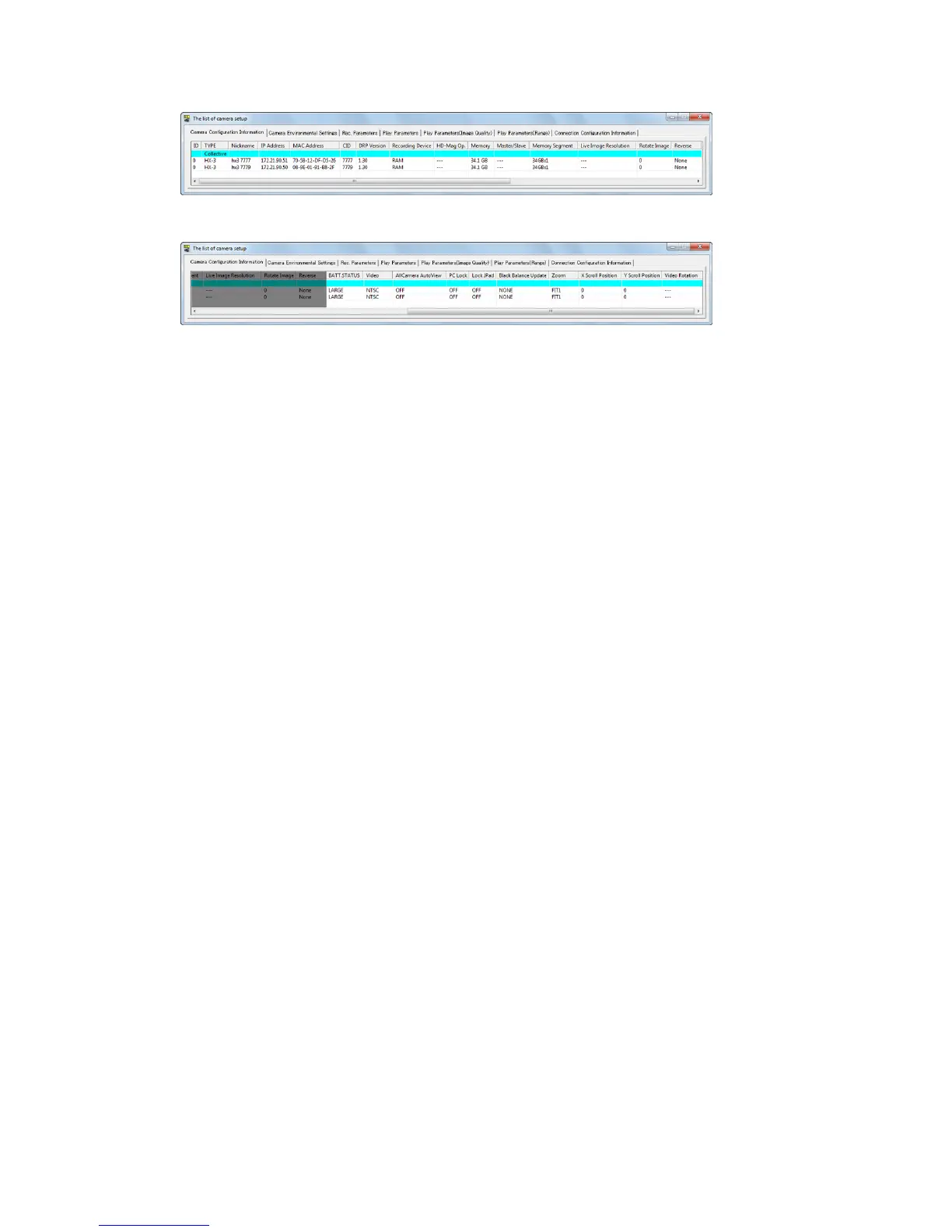 Camera Device Information (HX Camera Connection) 2
