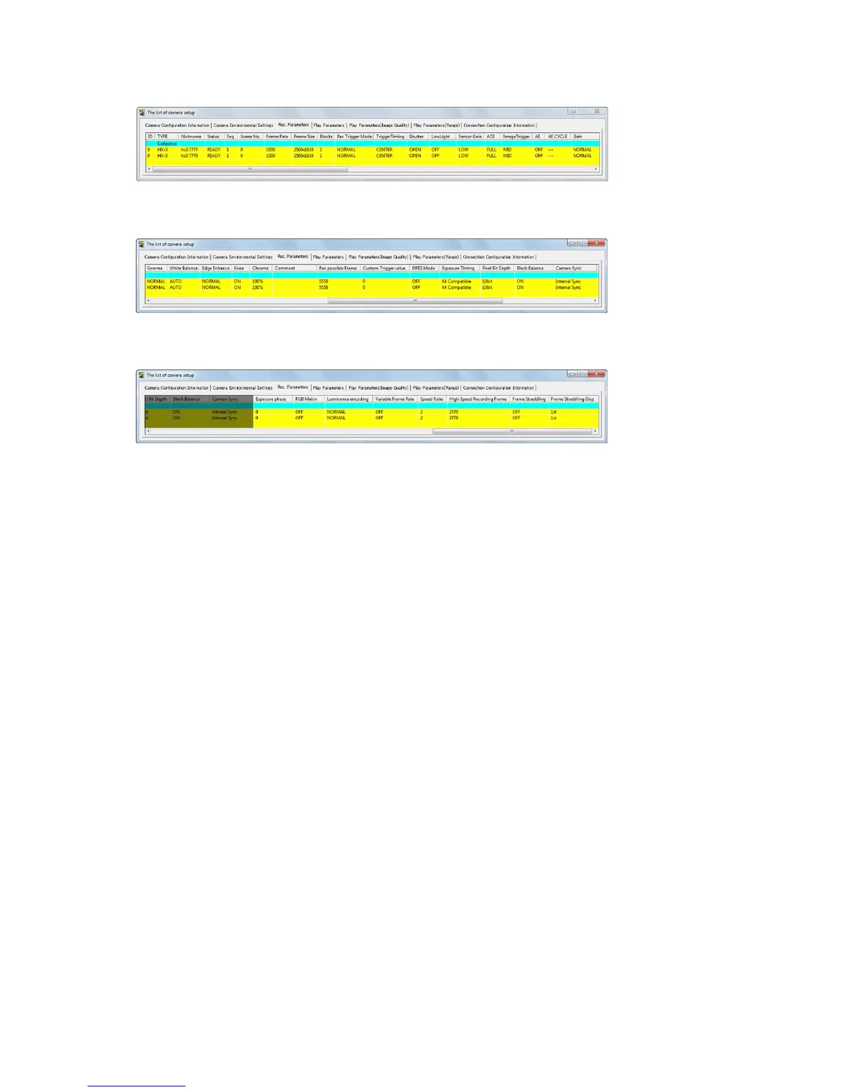 Recording Parameters (HX Camera Connection) 3