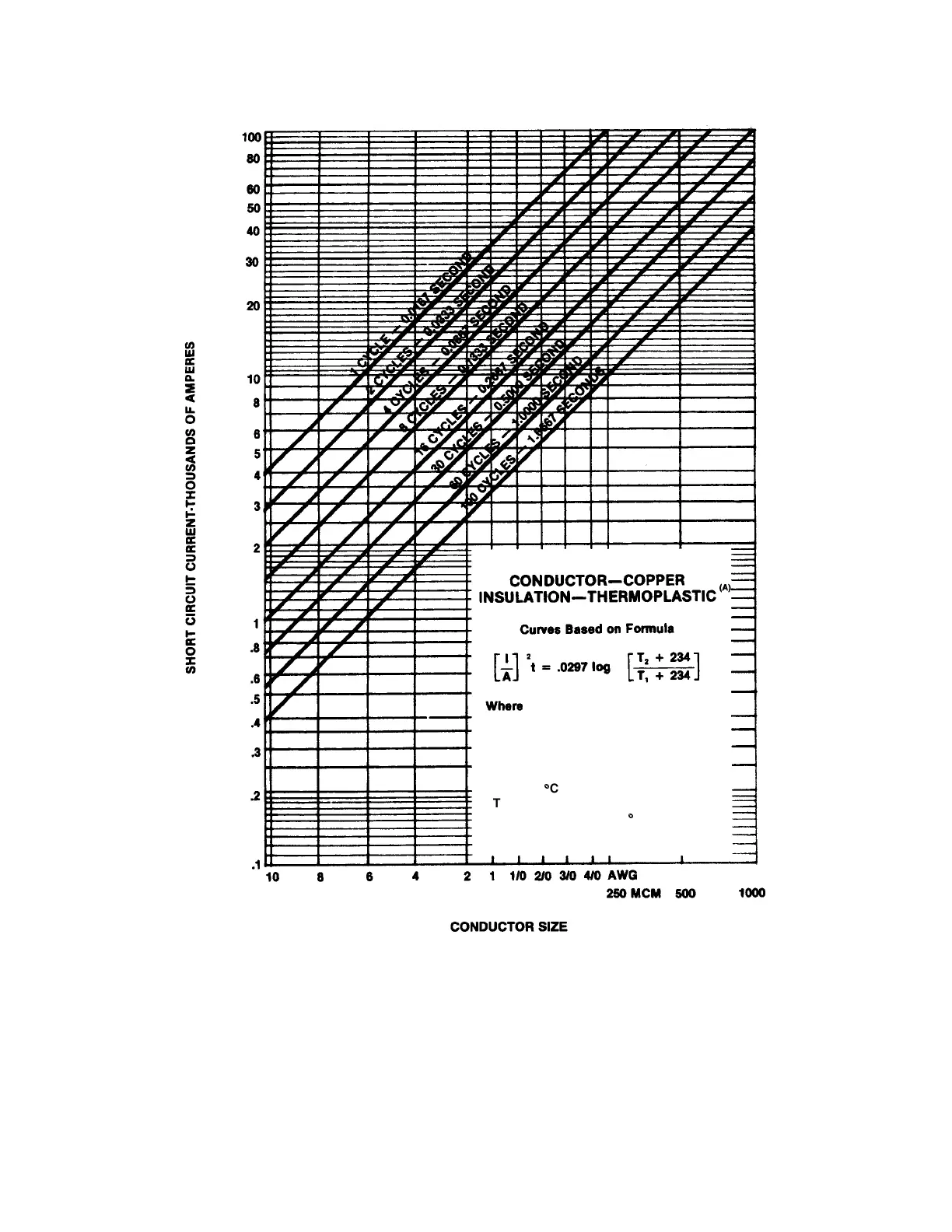Figure 2 — Allowable short circuit currents for insulated copper conductors.