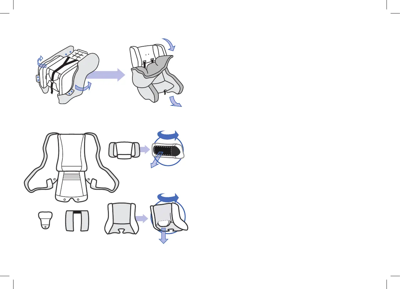 • Most előrefelé lehúzhatja a fejtámla huzatát és az üléshuzatot.