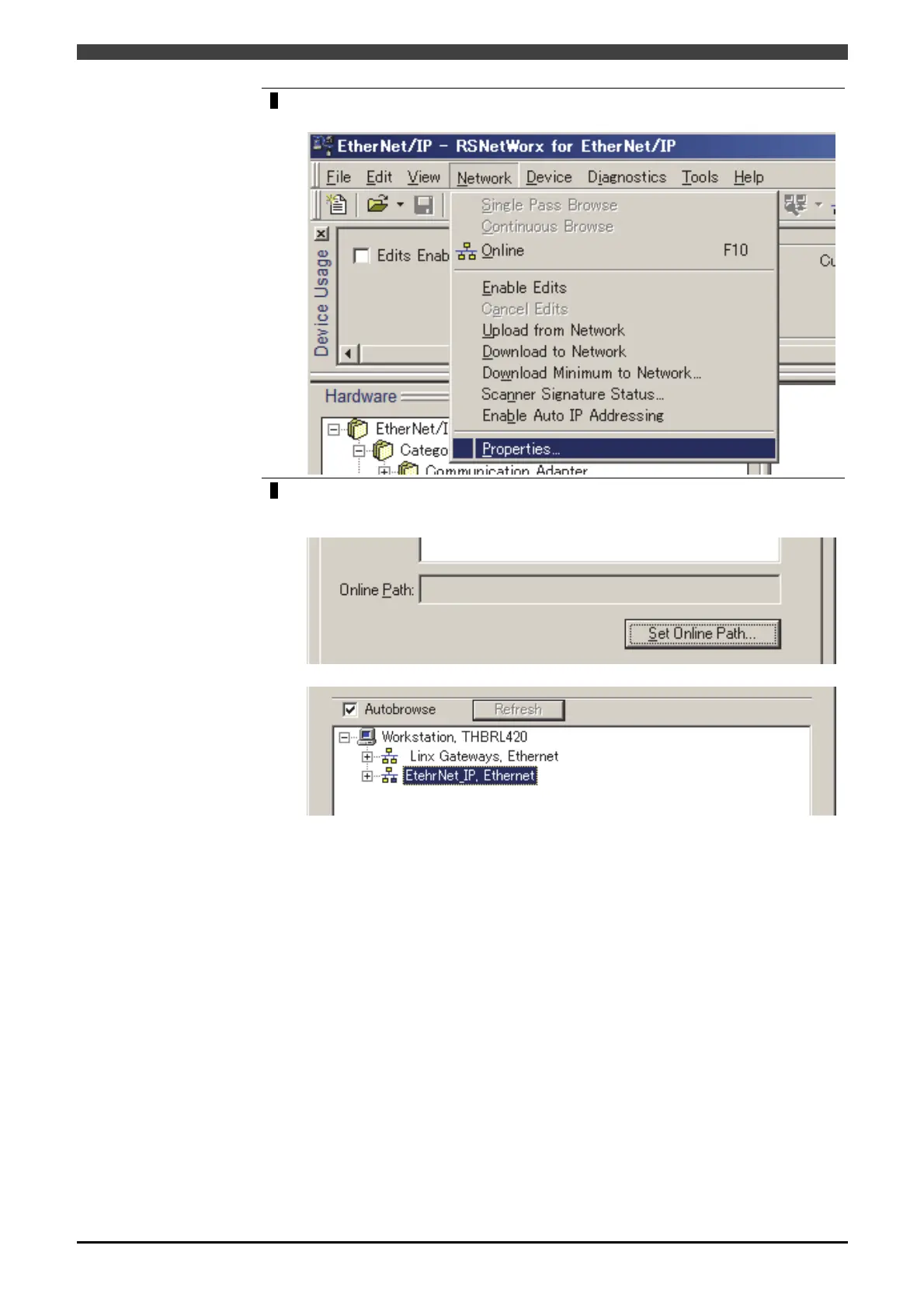 >> Select “EtherNet/IP Driver” set with “RsLinx”.
