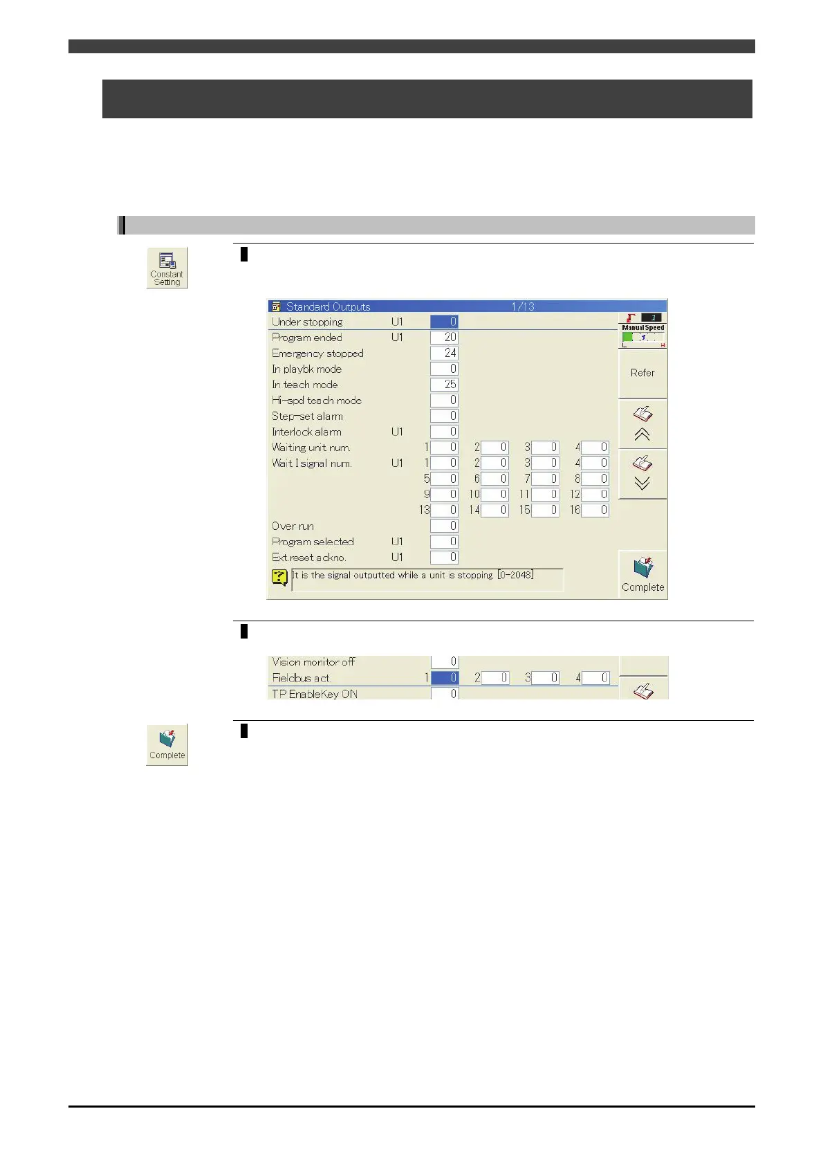 Open <Constant Settings>-[6 Signals]-[3 Output Signal Assignment]-[1 Standard