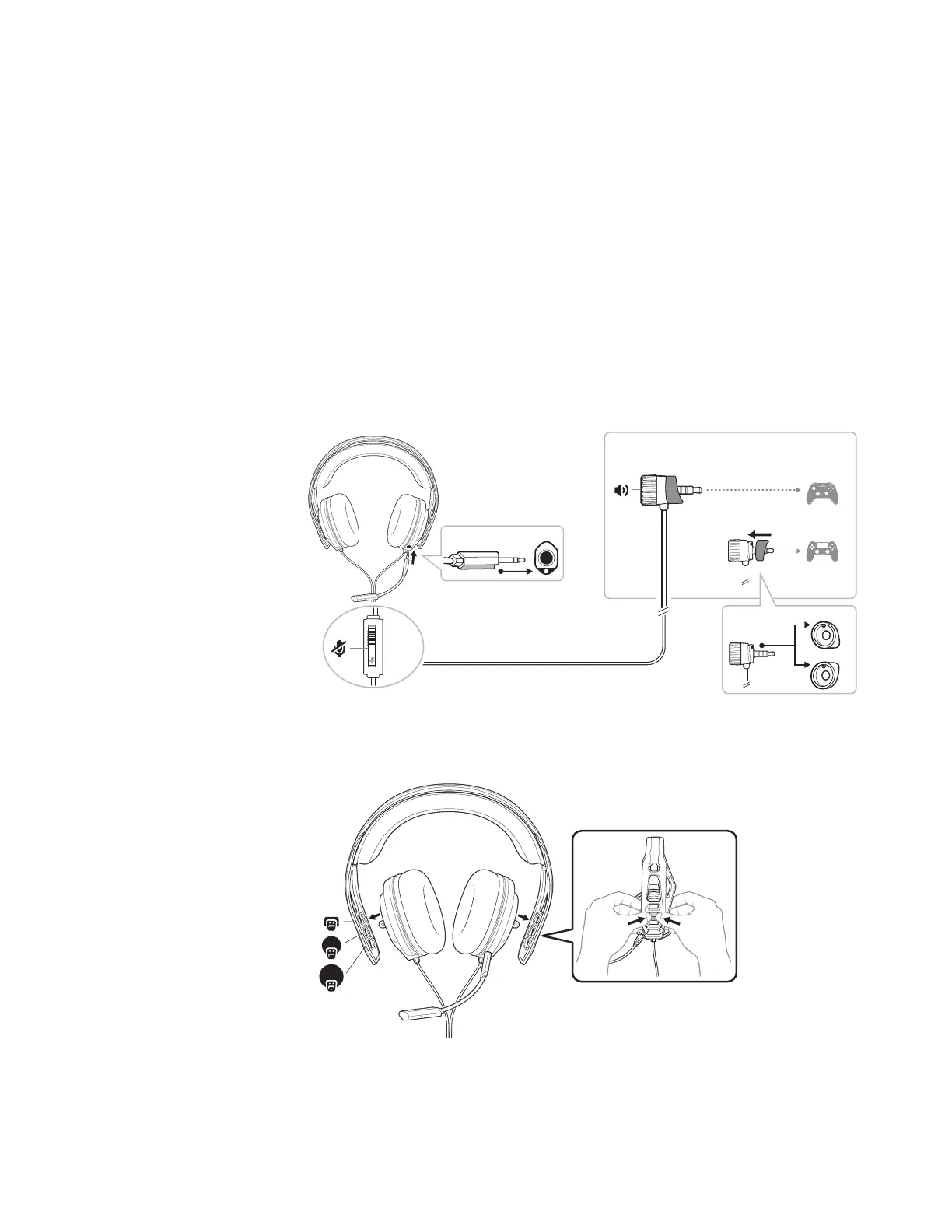 путем перемещения чашек наушников. Чтобы снять чашку наушников с оголовья, следует