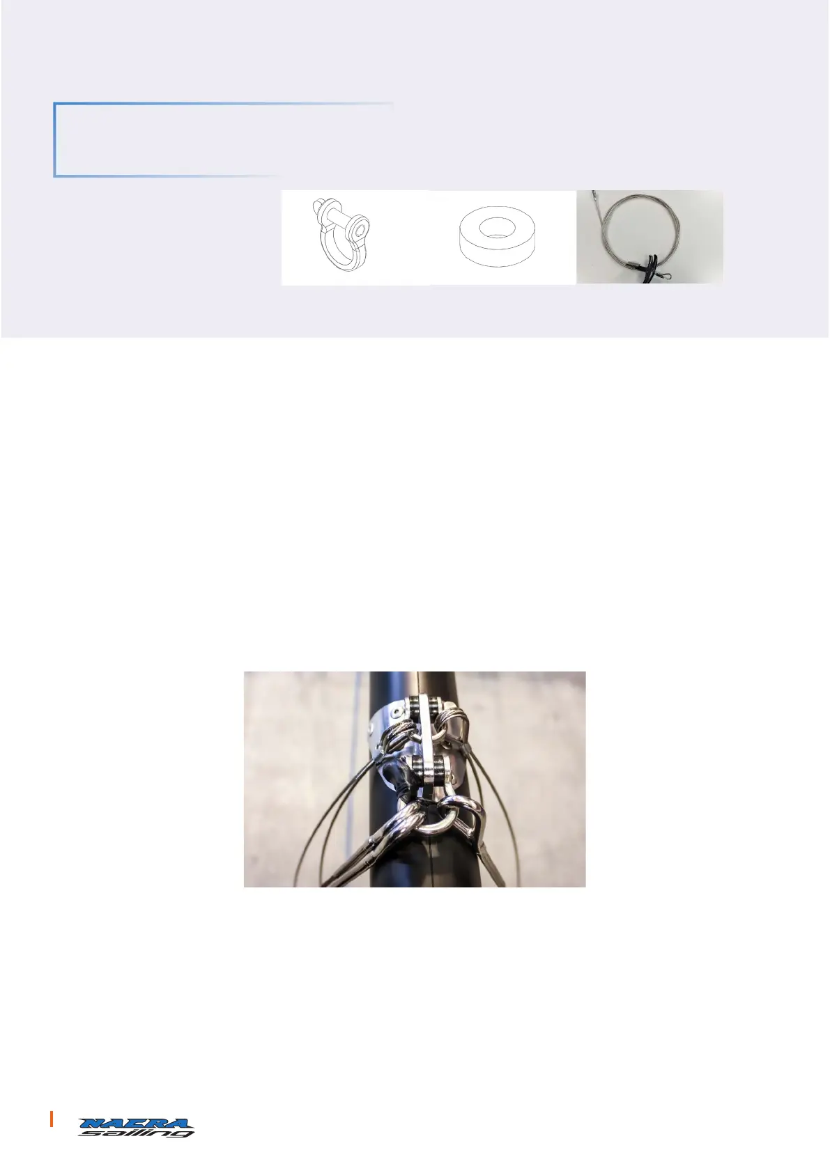 1. Use the shackle 6mm 1/4, 2x nylon washers and the