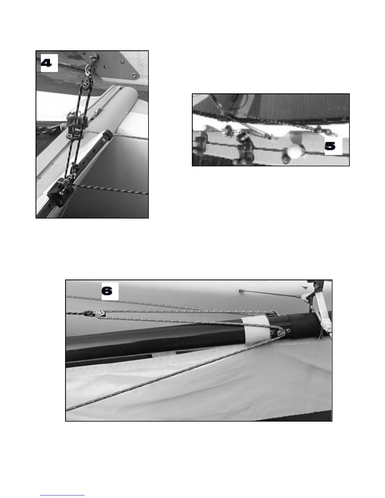 Attach the single airbl o ck with becket to the traveler car on the jib tra ck as show n . Using the small
