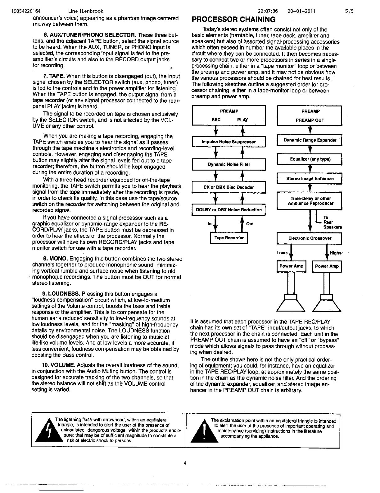NAD 1020A - Processor Chaining; Tape Monitor Loop Configuration; Preamp Output Loop Configuration; Safety Information