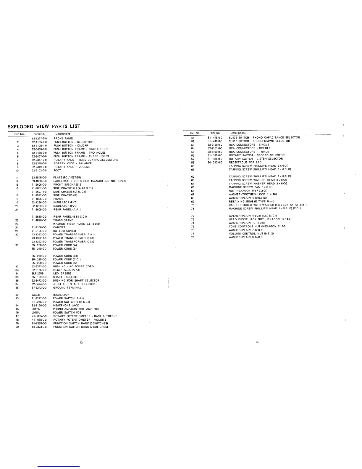 NAD 1155 - Parts Lists and Views; Exploded View Parts List