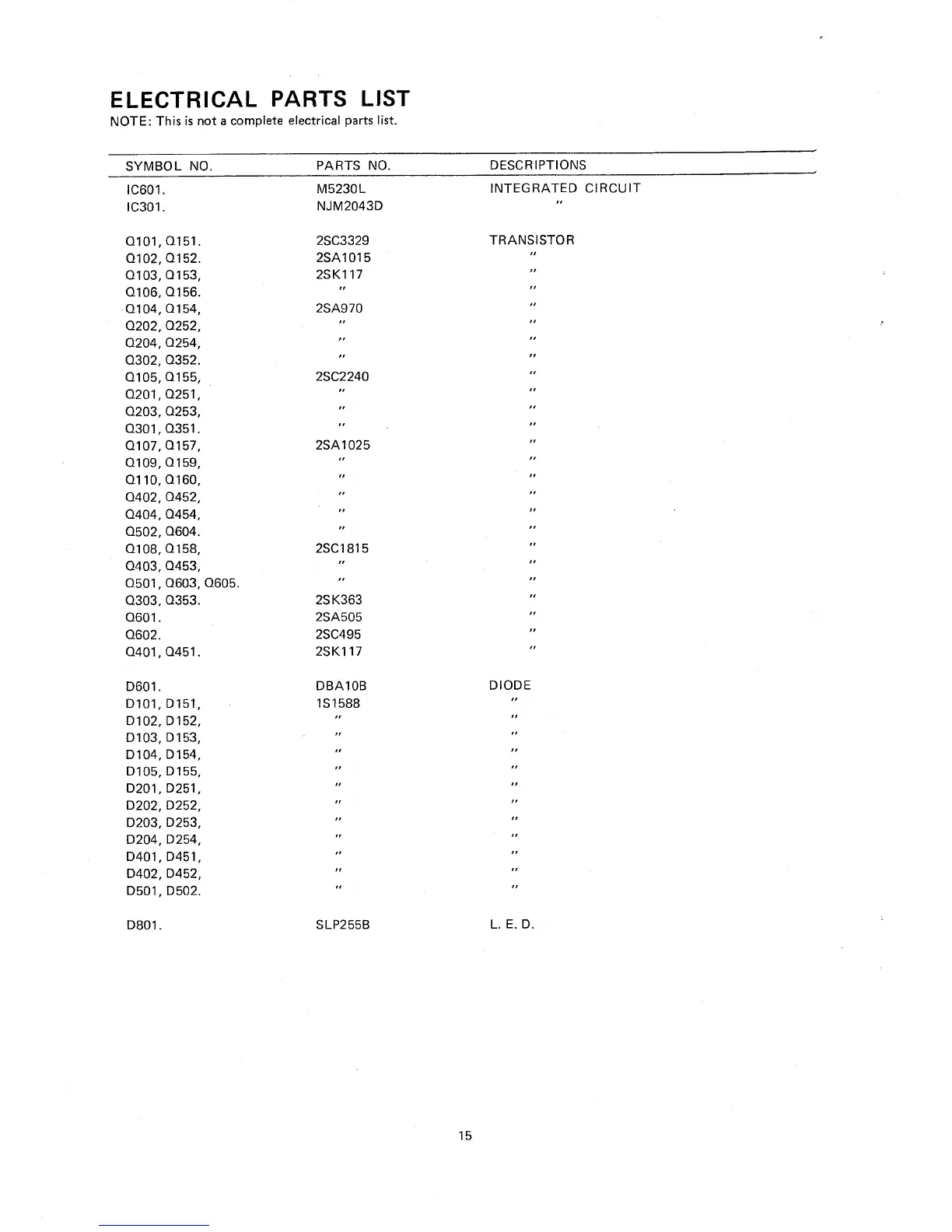NAD 1155 - Electrical Parts List