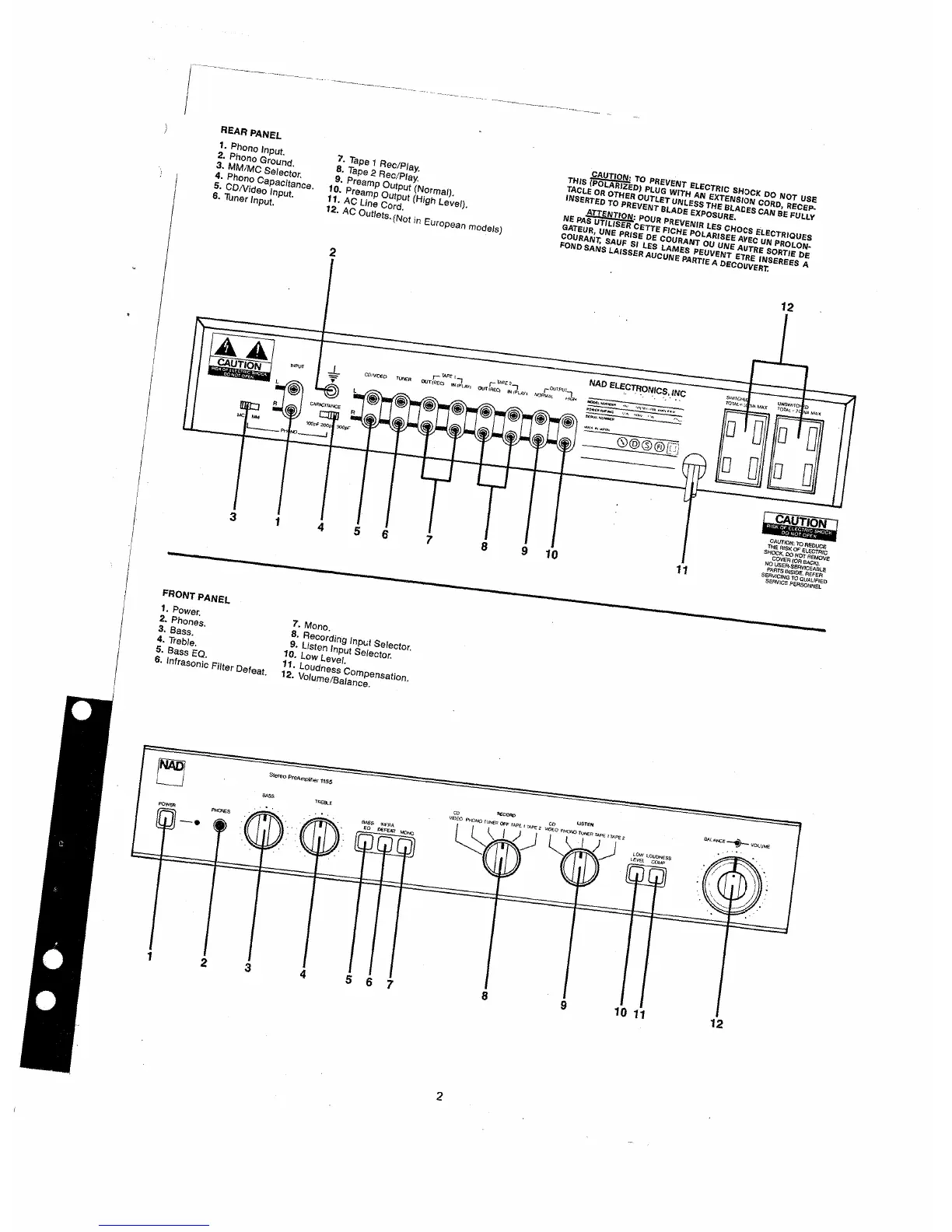 NAD 1155 - Rear Panel; Front Panel
