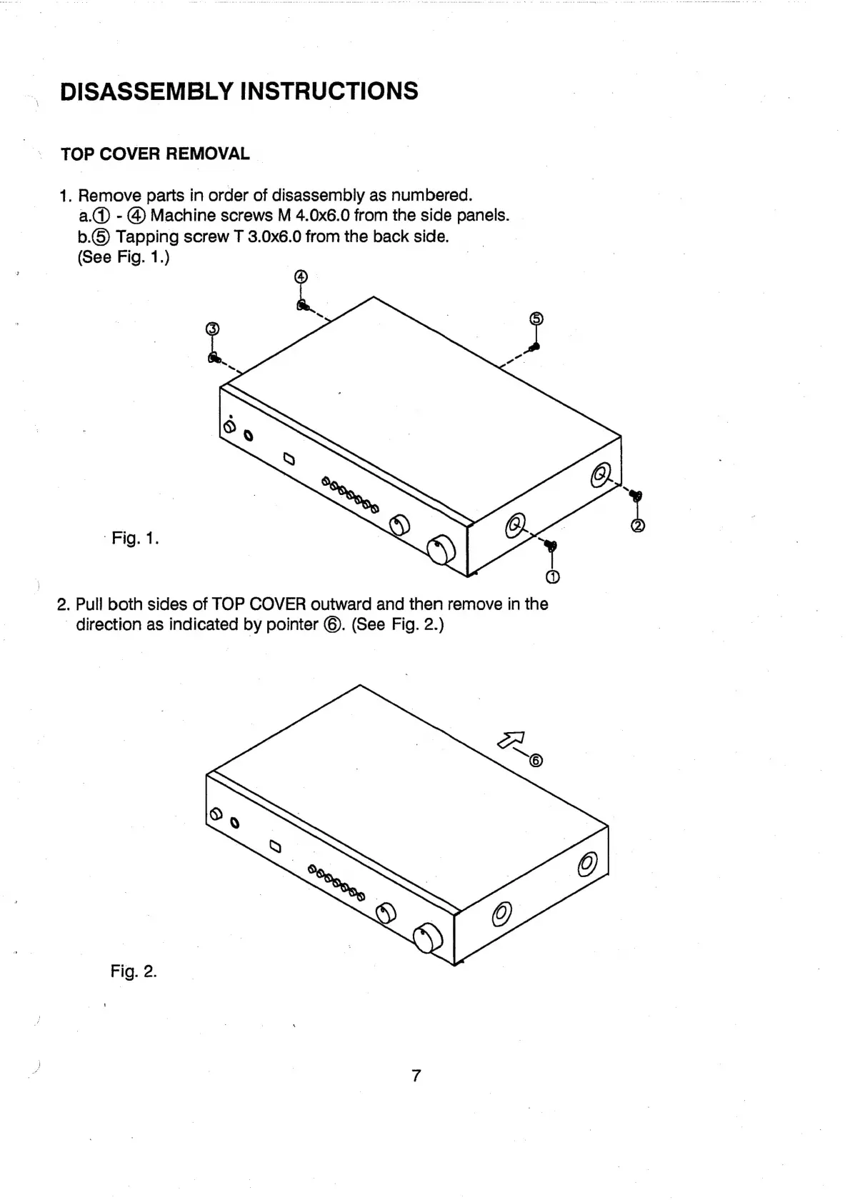 NAD 116 - Disassembly Instructions; Top Cover Removal Procedure