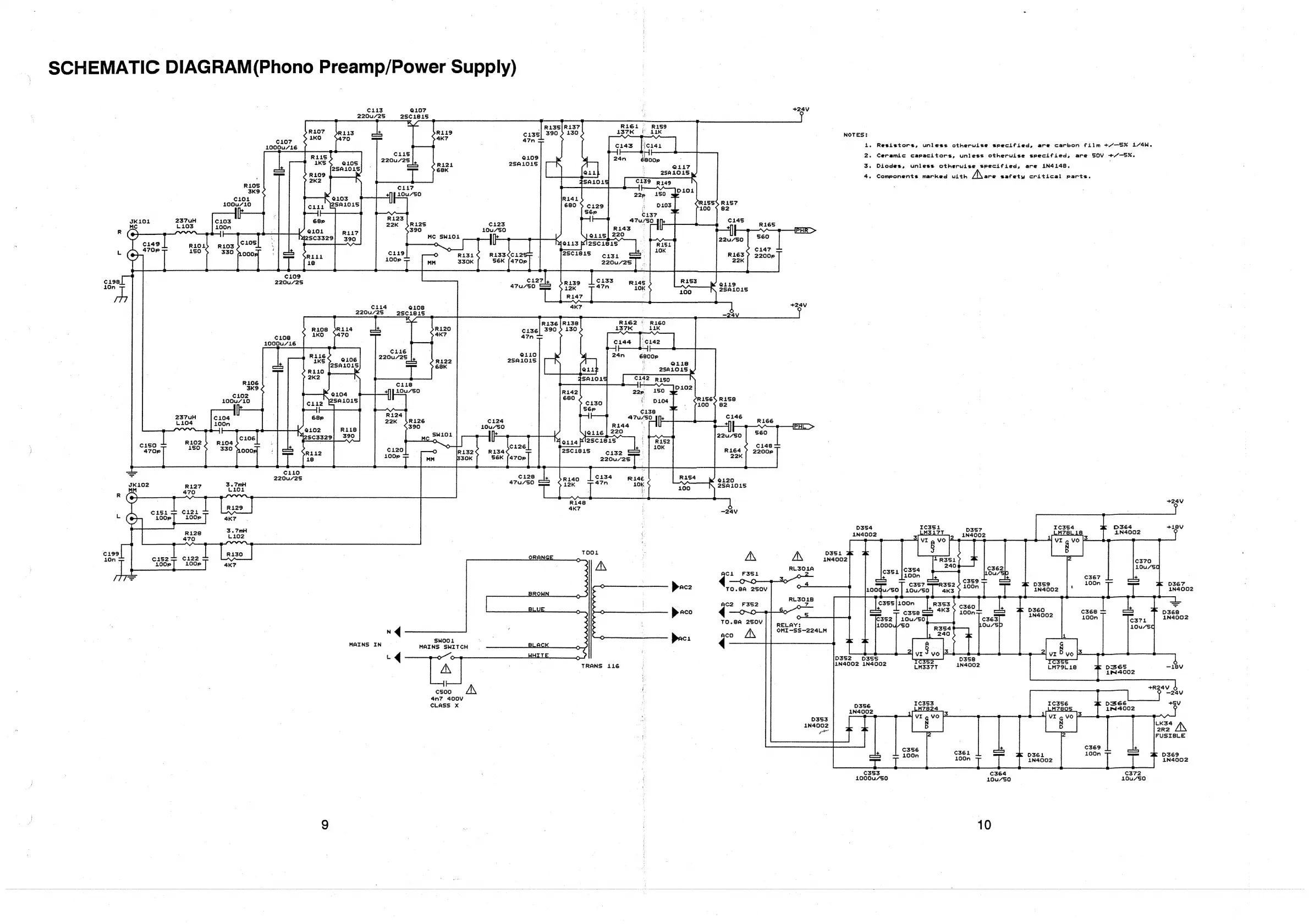 NAD 116 - Schematic Diagram: Phono Preamp and Power Supply