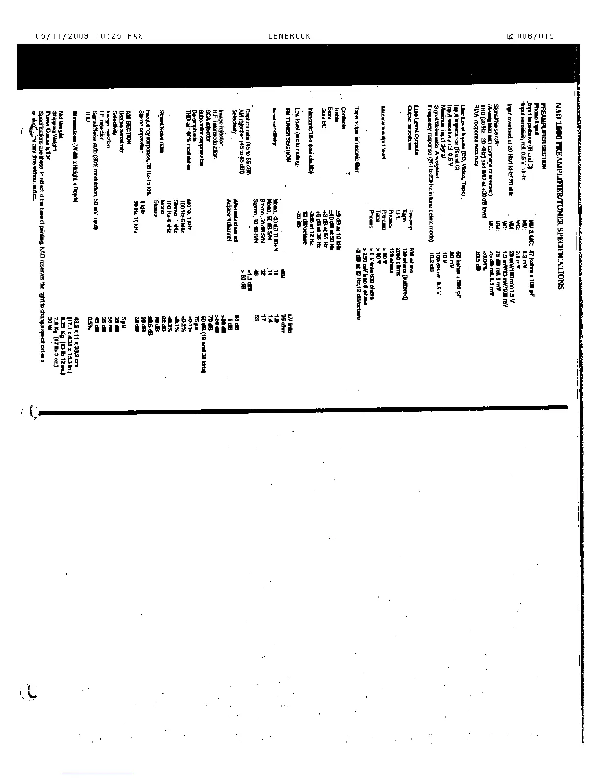NAD 1600 - Specifications; Preamplifier Section; FM Tuner Section; AM Section