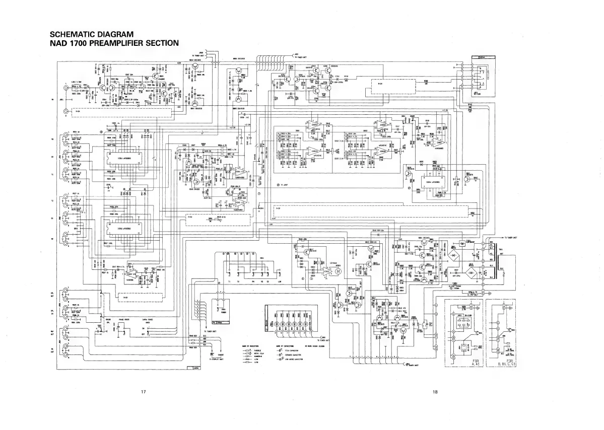 NAD 1700 - Preamplifier Section Schematic Diagram; Left and Right Channel Signal Paths; Tone and Filter Circuitry
