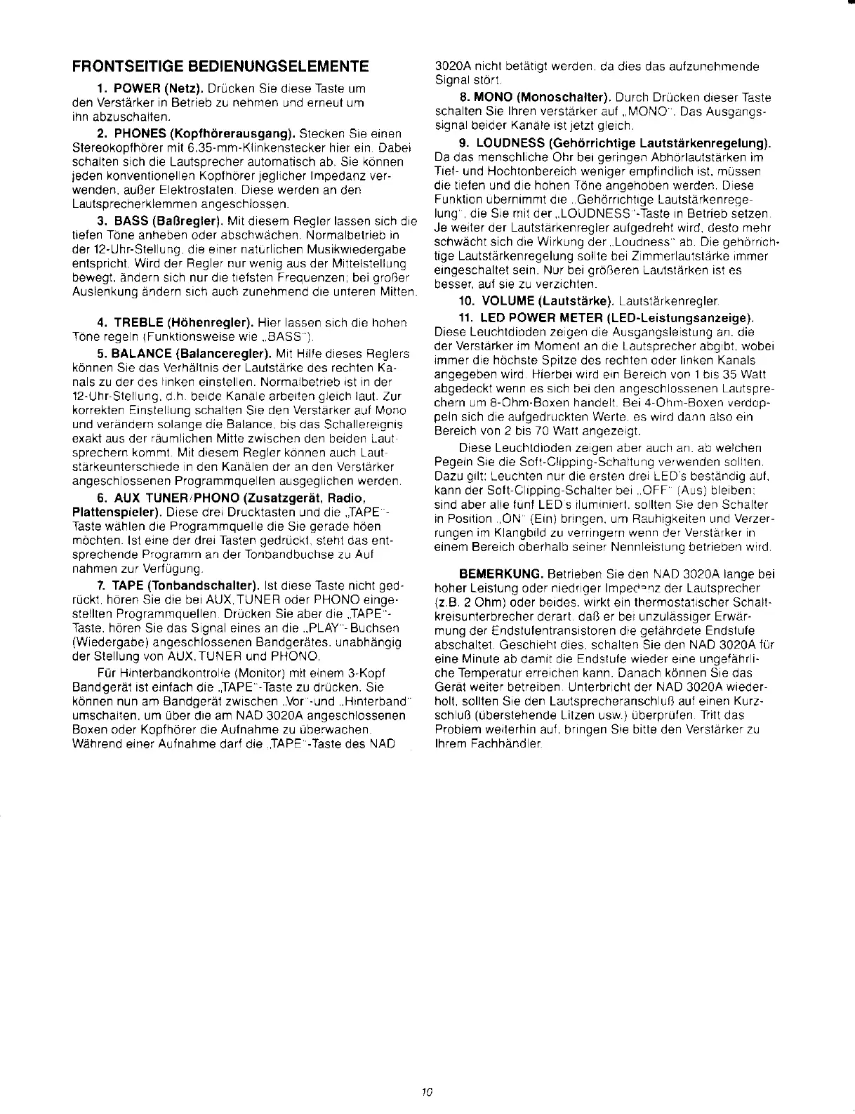 Gerat weiter betreiben Unlerbr cht der NAD 3020A