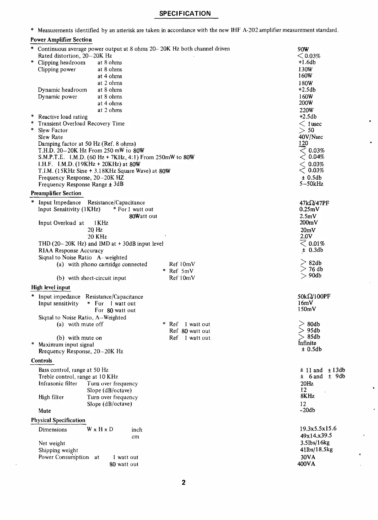 NAD 3080 - Specifications; Power Amplifier Specifications; Preamplifier Specifications; Unit Controls and Physical Specifications