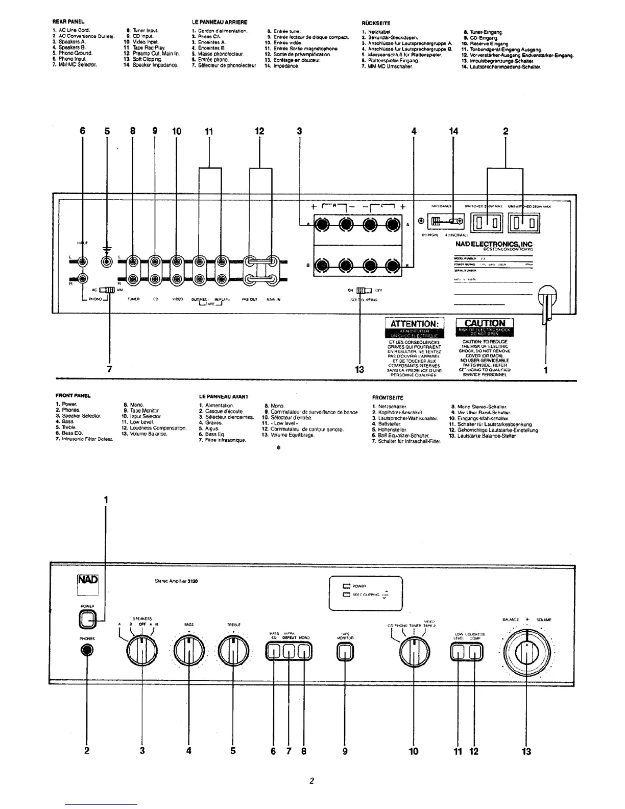 NAD 3130 - Rear Panel Connectors; Power and Accessory Connections; Speaker Connections; Phono and Signal Inputs