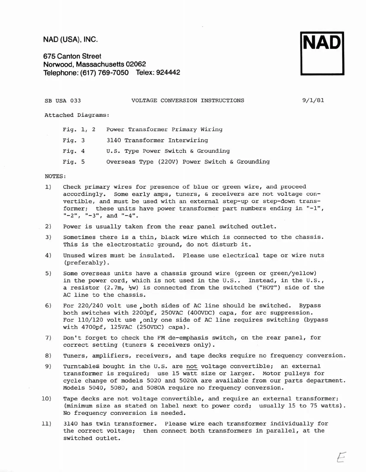 NAD 3140 - Service Bulletin: Voltage Conversion Instructions