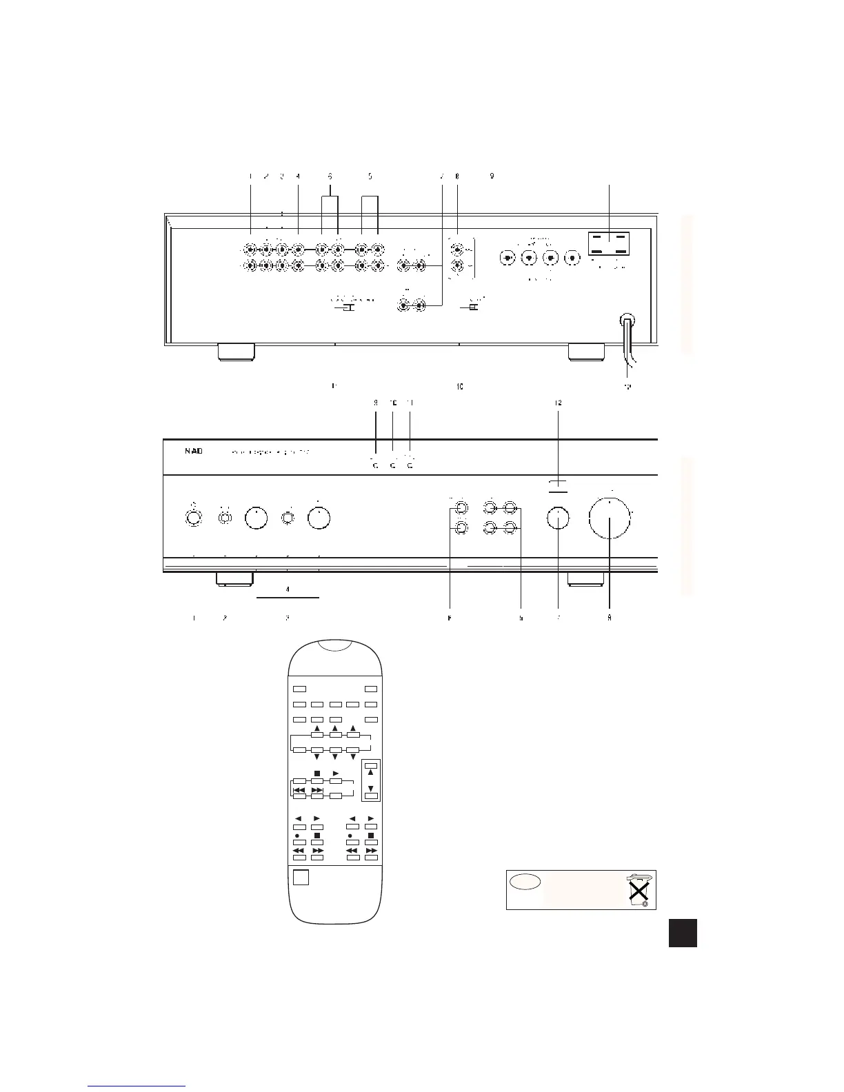 NAD 317 - Rear Panel Connections Overview; Front Panel Controls Overview; Remote Control