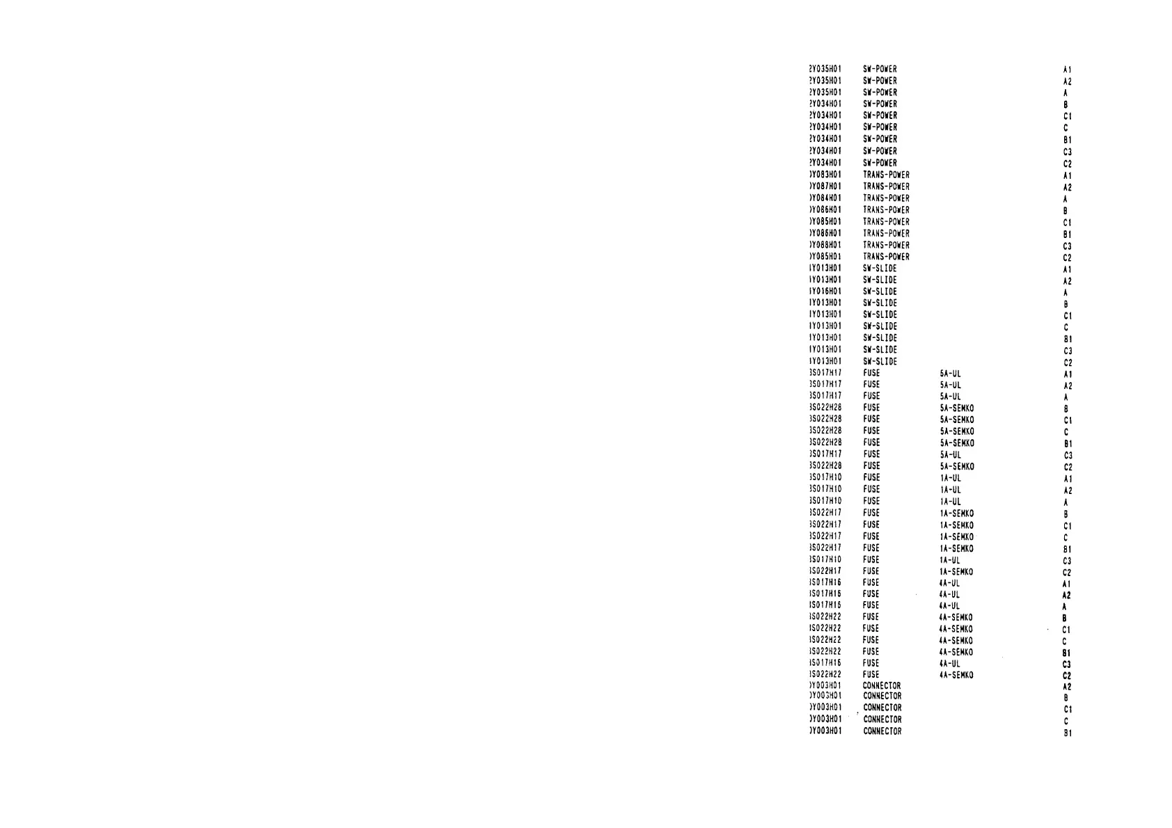 NAD 3240PE - Component List; Switches, Fuses, and Connectors