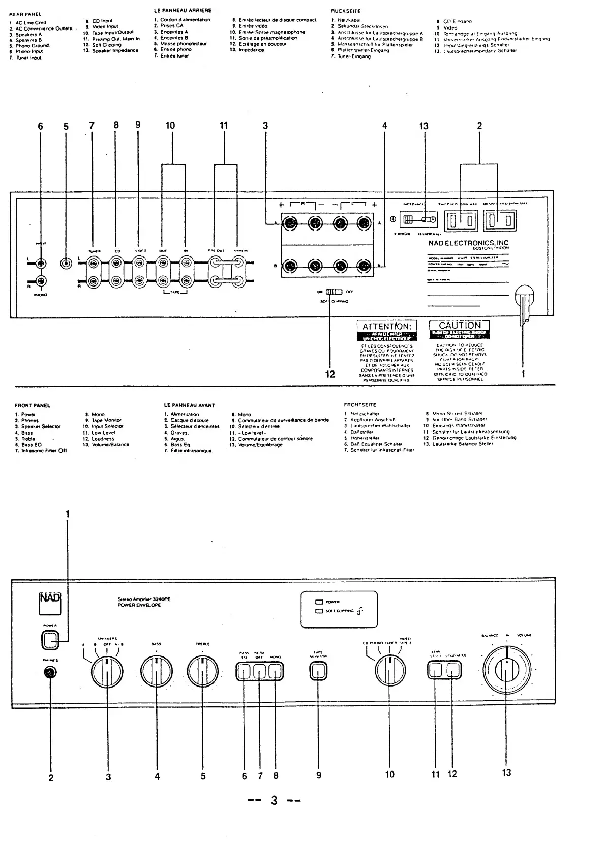 NAD 3240PE - Front and Rear Panel Overview; Rear Panel Connections; Front Panel Controls