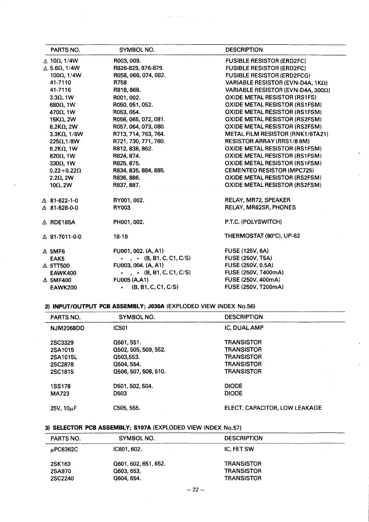 NAD 3400 - Electrical Parts List; Main;Control;Supply PCB Parts; Input;Output PCB Parts; Selector PCB Parts