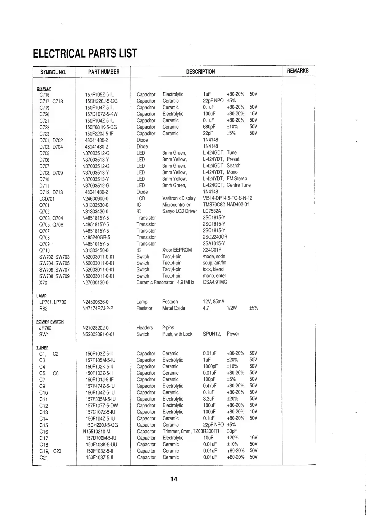 NAD 402 - Electrical Parts List; Electrical Component Details