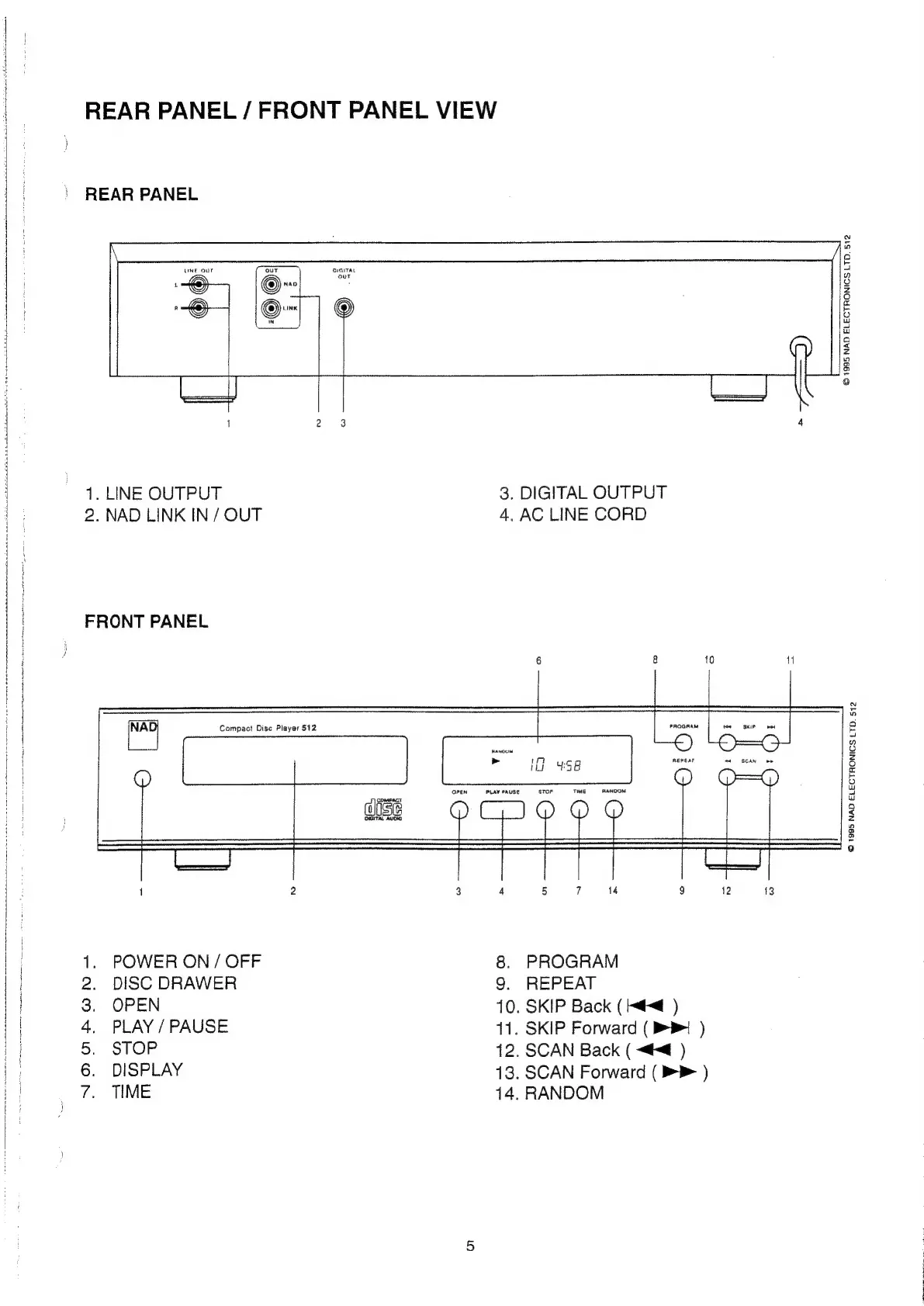 NAD 512 - Panel Overview; Rear and Front Panel Identification