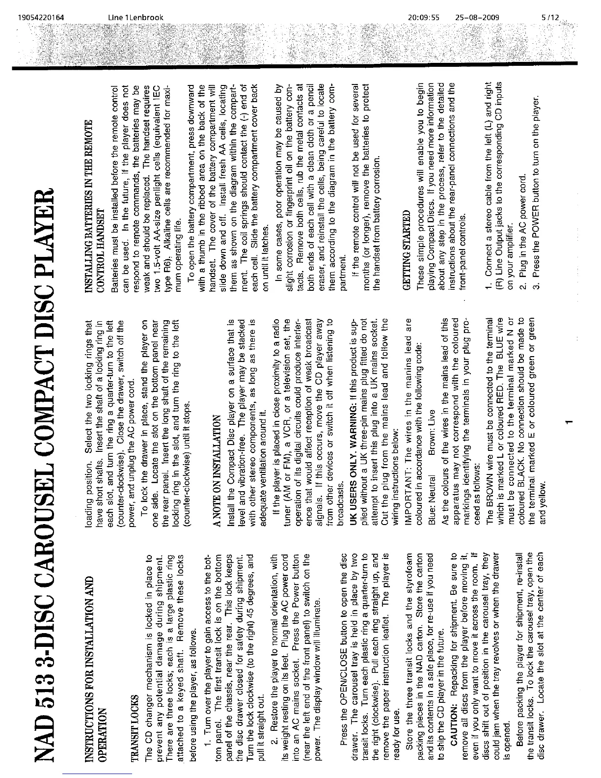 NAD 513 - Installation and Operation; Remote Control Battery Installation; Getting Started