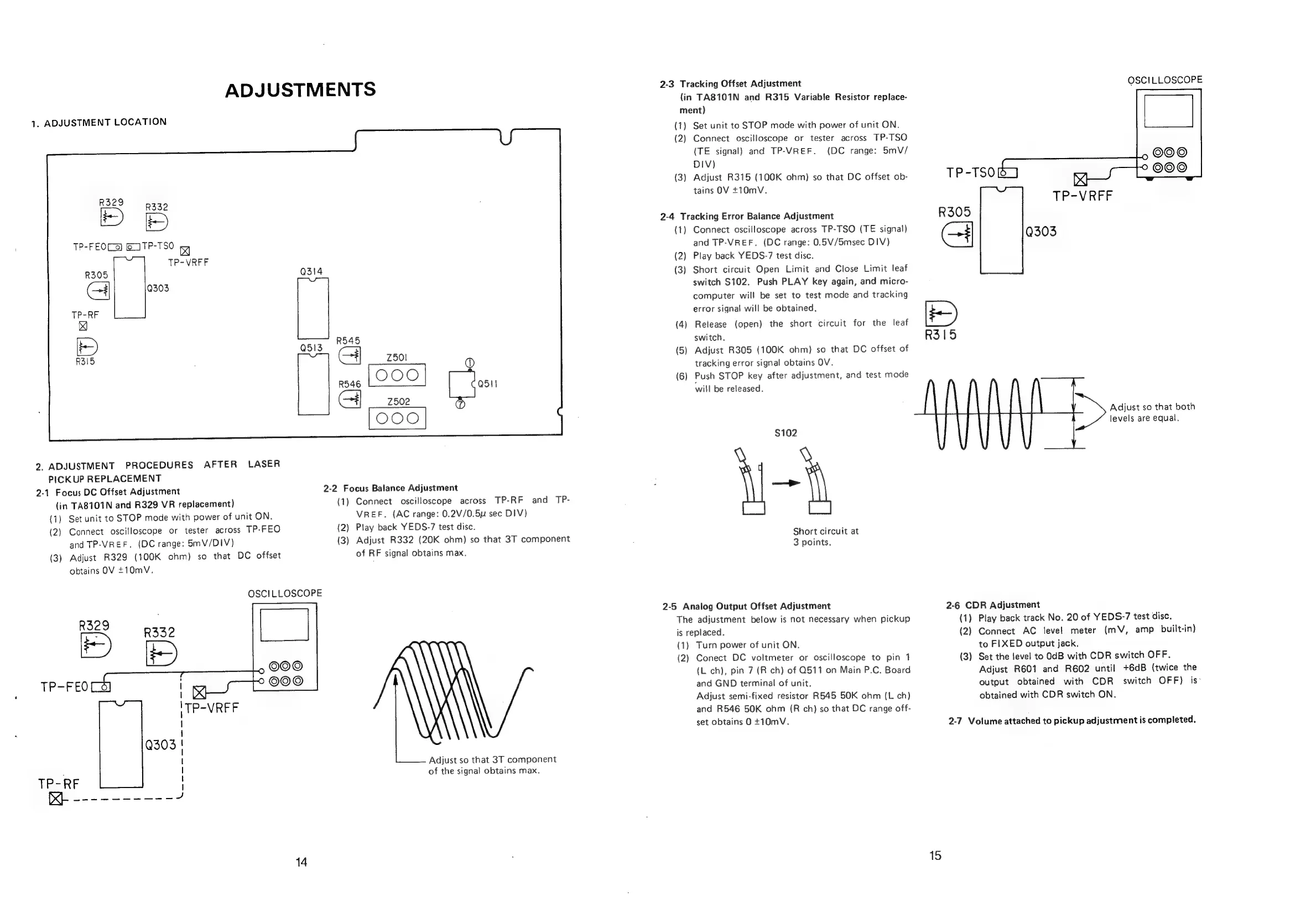 NAD 5240 - Adjustments; Focus and Tracking Adjustments; Output and CDR Adjustments