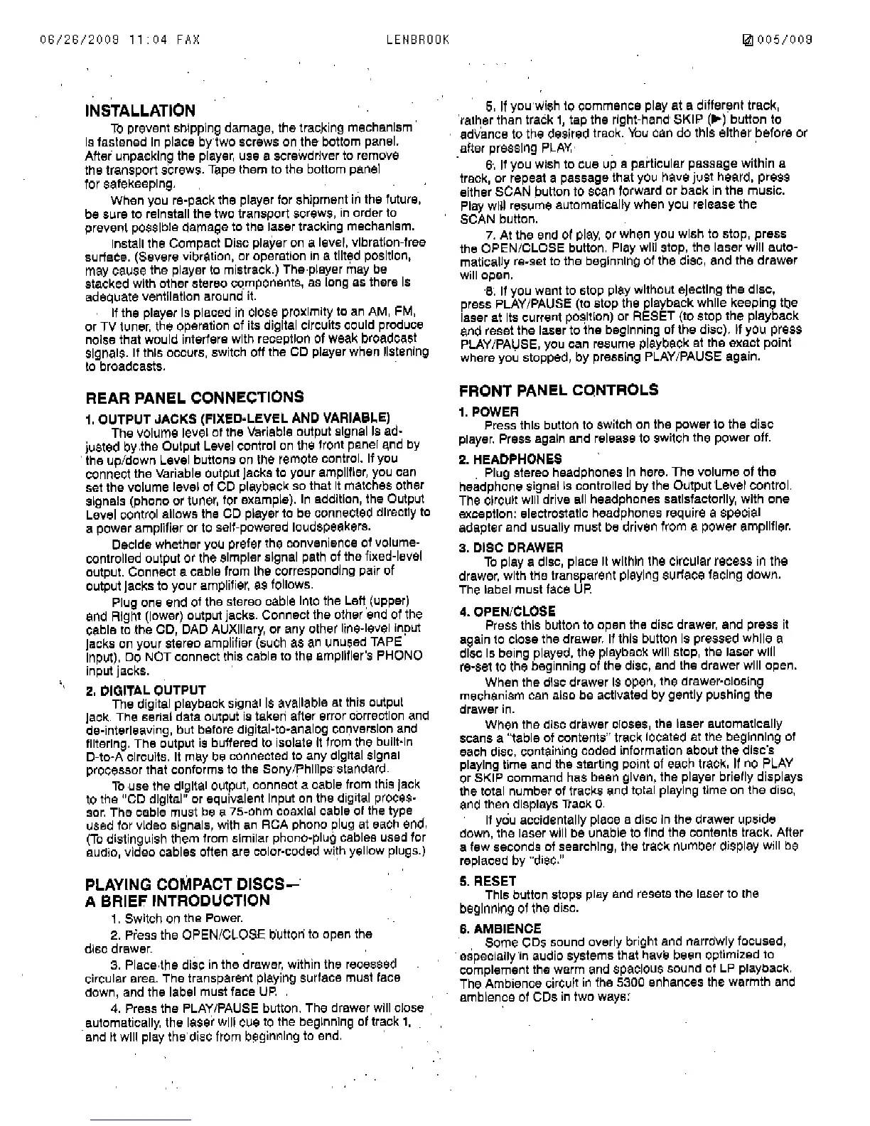 NAD 5300 - Installation and Operation Guide