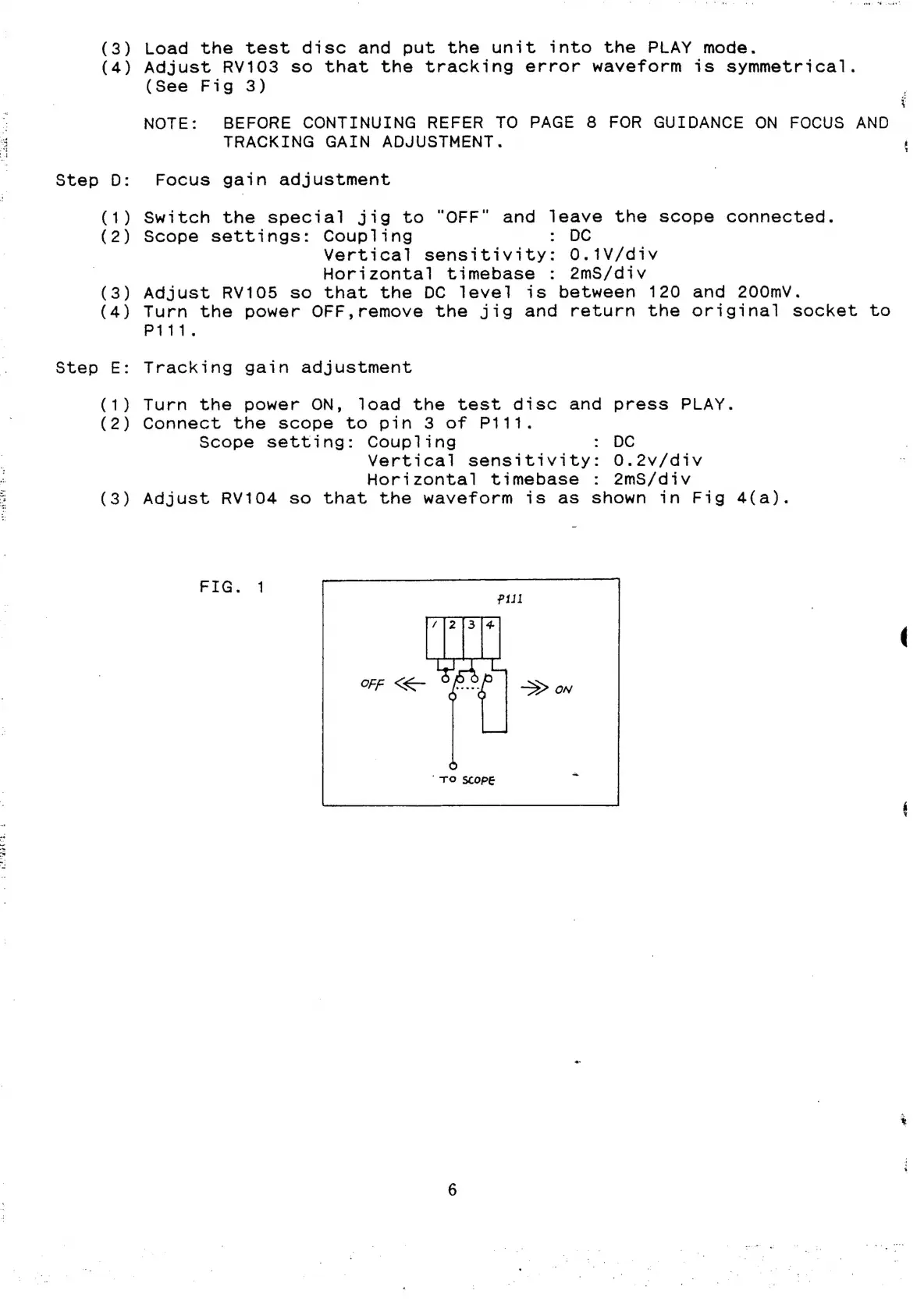 NAD 5420 - Alignment Procedures (Continued); Focus Gain Adjustment; Tracking Gain Adjustment