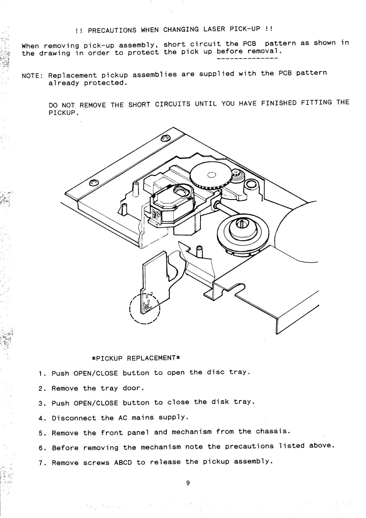 NAD 5420 - Laser Pick-up Replacement; Replacement Precautions; Replacement Steps