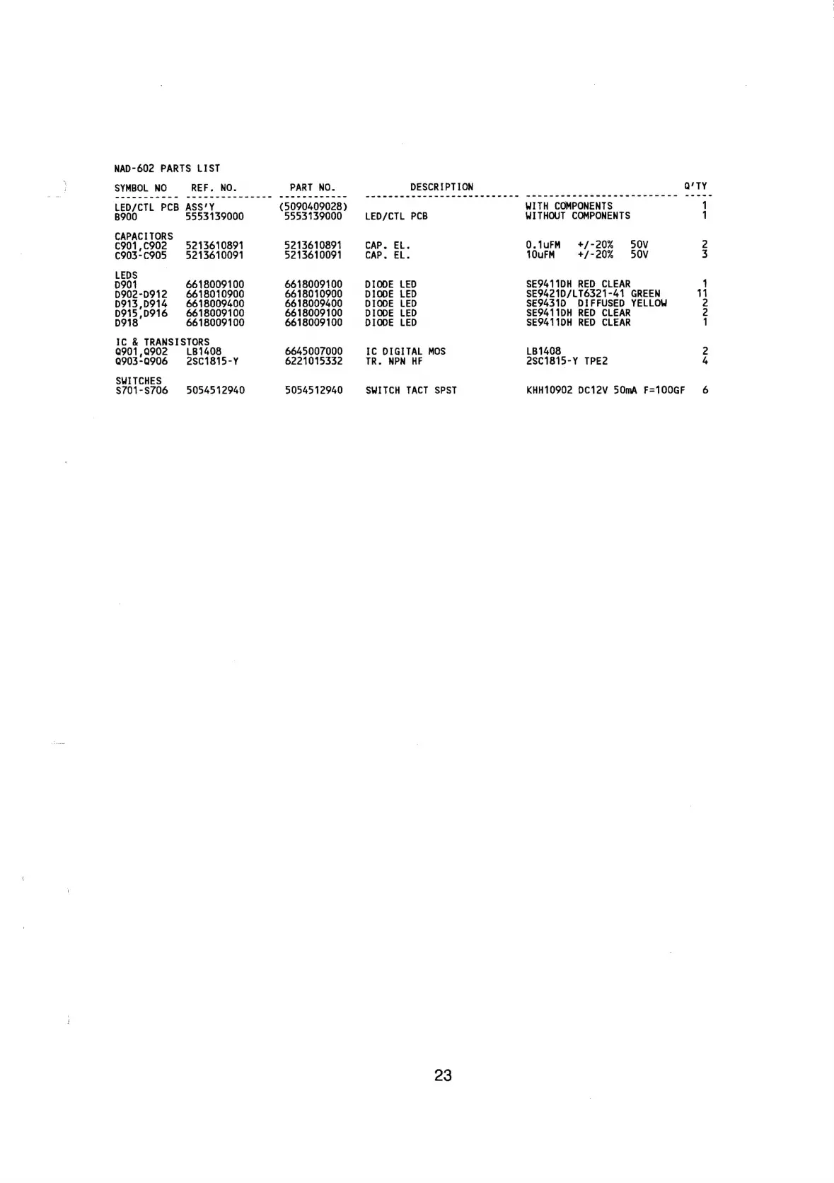 NAD 602 - Parts List