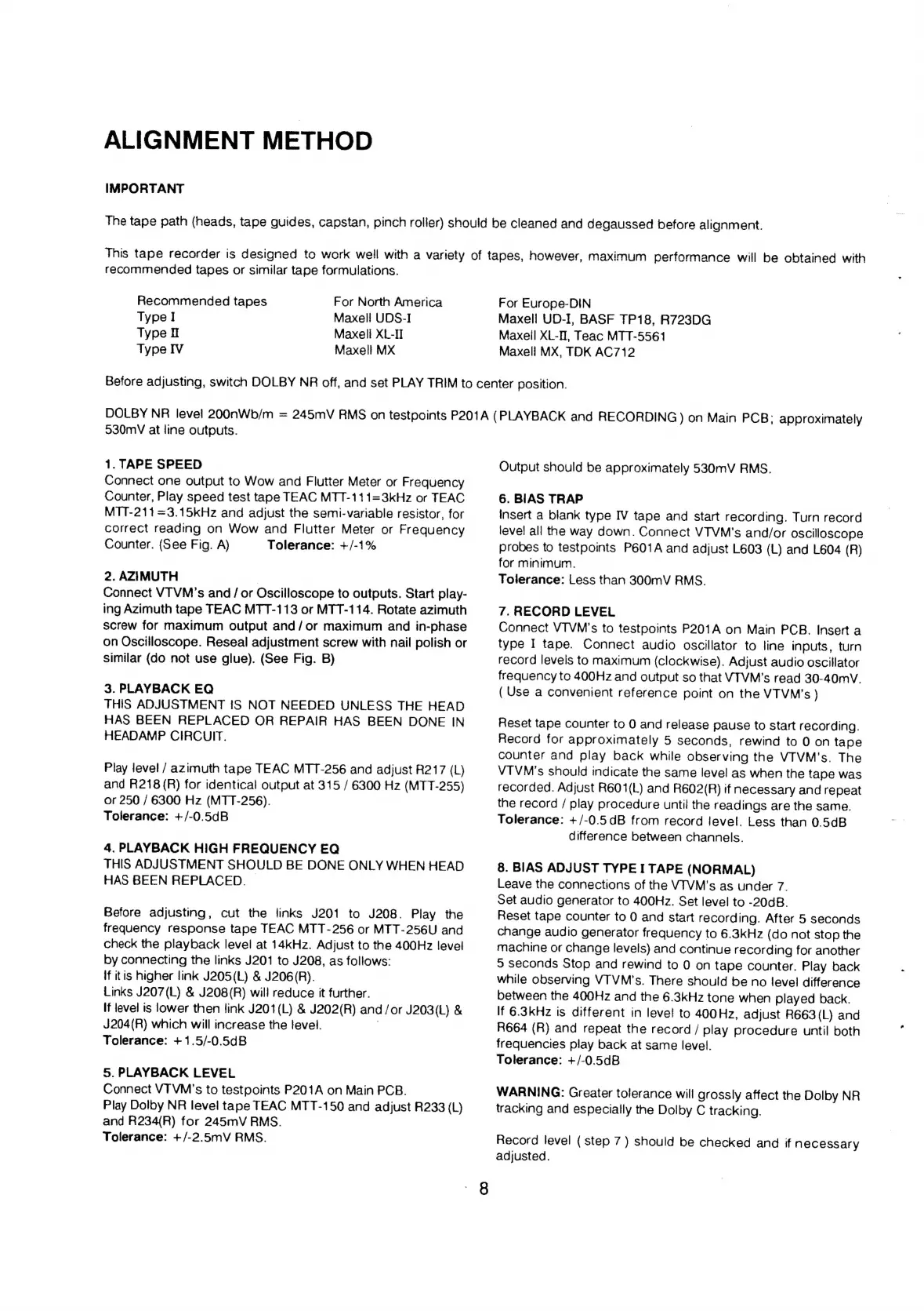 NAD 602 - Alignment Method; Tape Speed; Azimuth; Playback Level