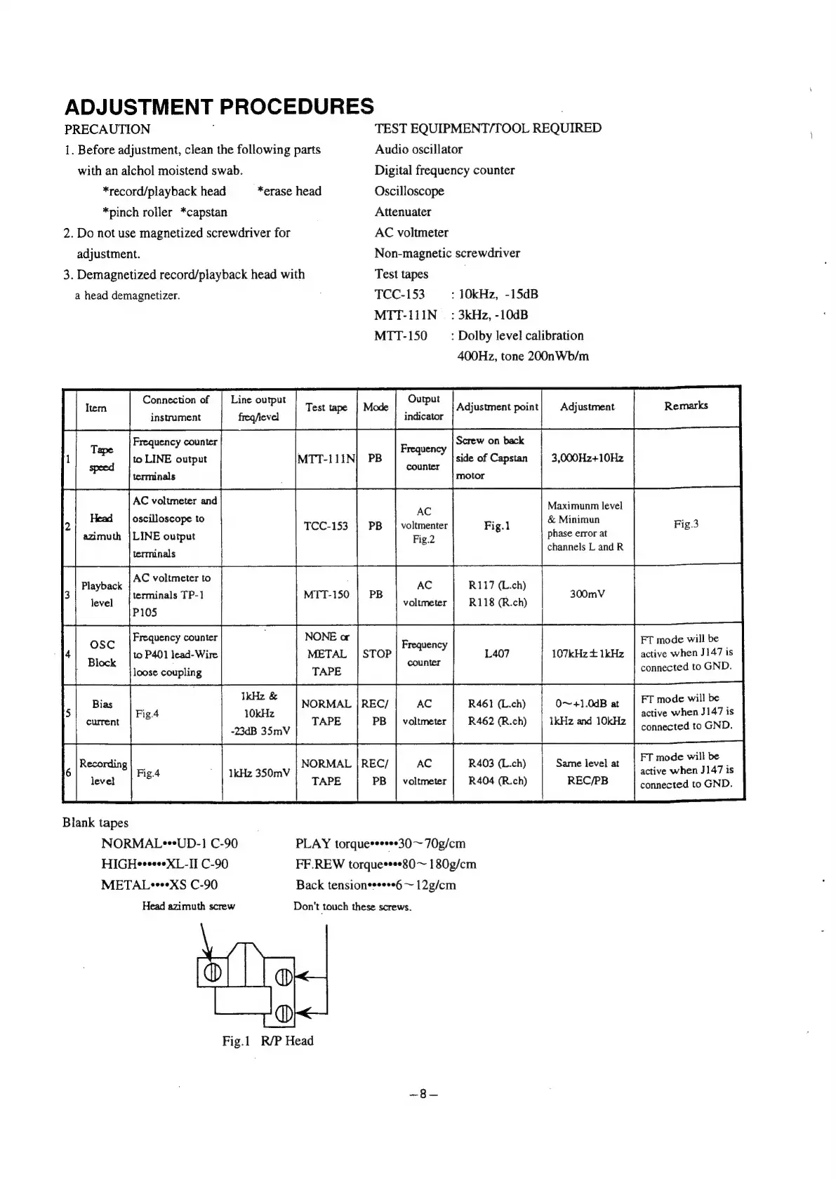 NAD 613 - ADJUSTMENT PROCEDURES; PRECAUTION; TEST EQUIPMENT;TOOL REQUIRED