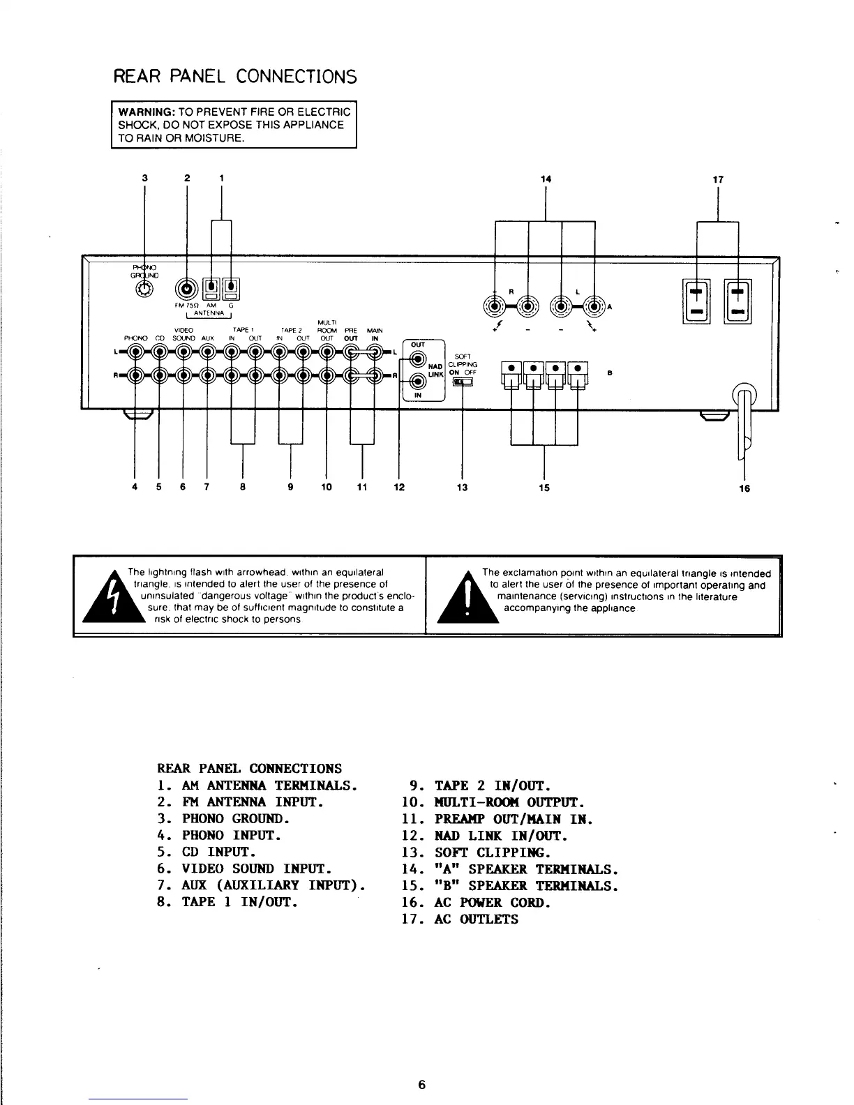 NAD 705 - Panel Connections and Controls; Rear Panel Connections