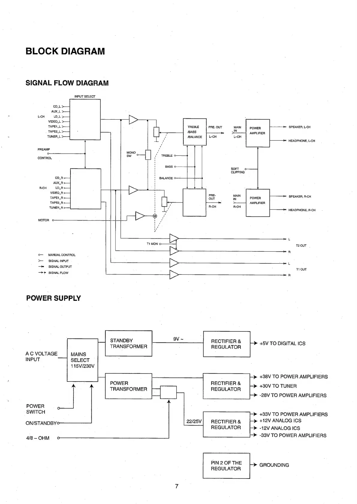 NAD 712 - System Block Diagram and Signal Flow; Signal Flow Diagram Explanation; Power Supply Unit Design; Power Supply Circuitry Details
