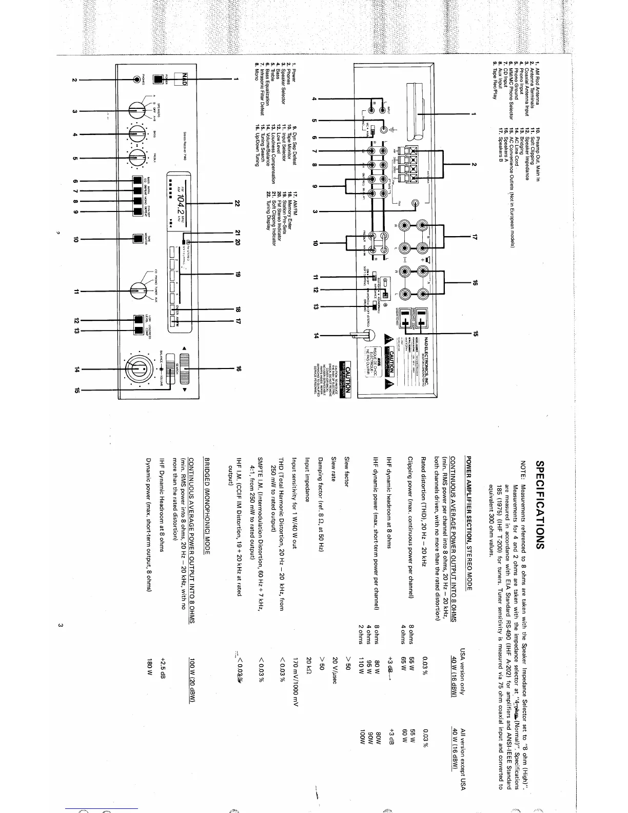 NAD 7140 - Unit Specifications; Power Amplifier Specifications (Stereo)