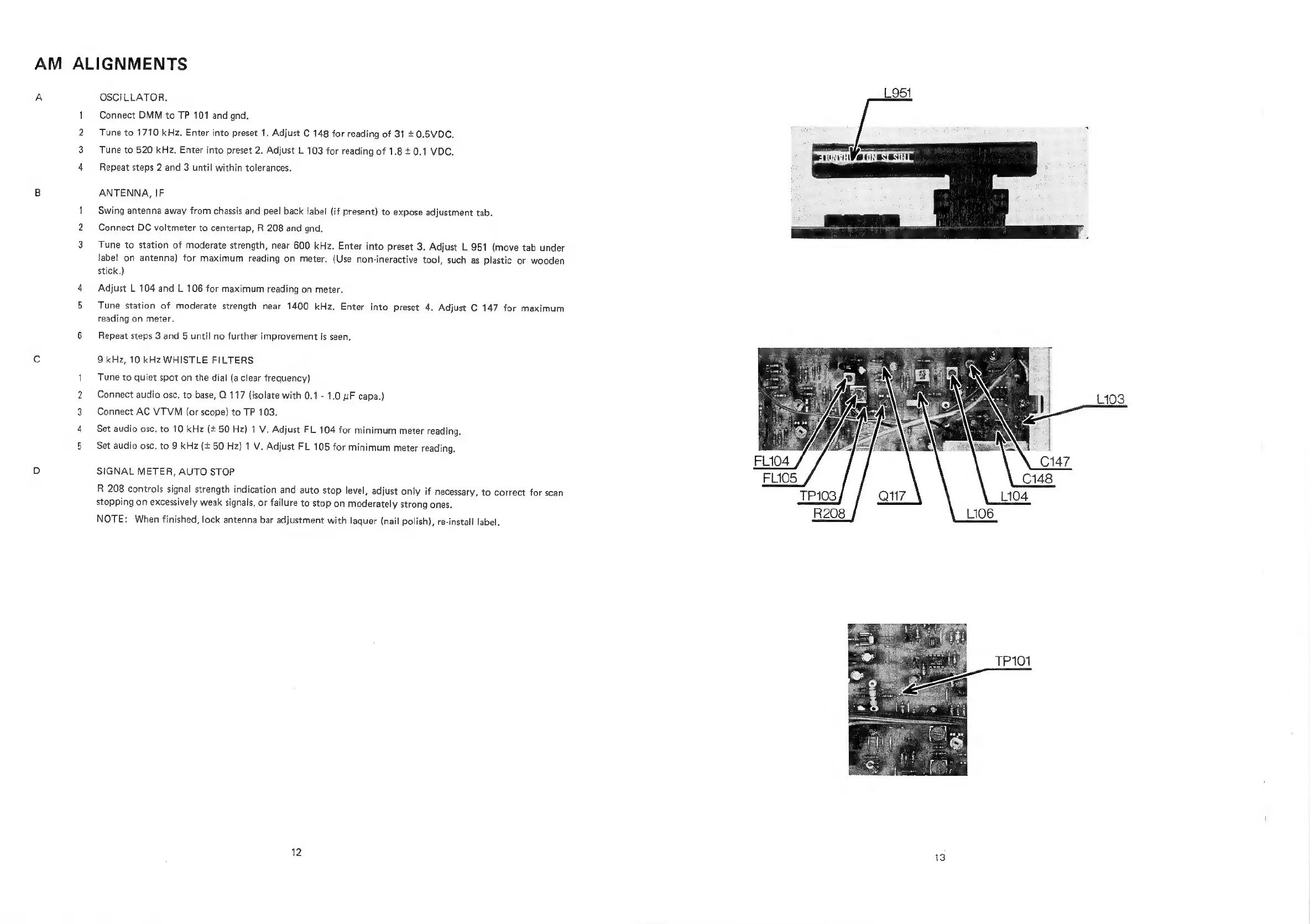 NAD 7155 - AM Alignments; Oscillator Alignment; Antenna and IF Alignment; Whistle Filters