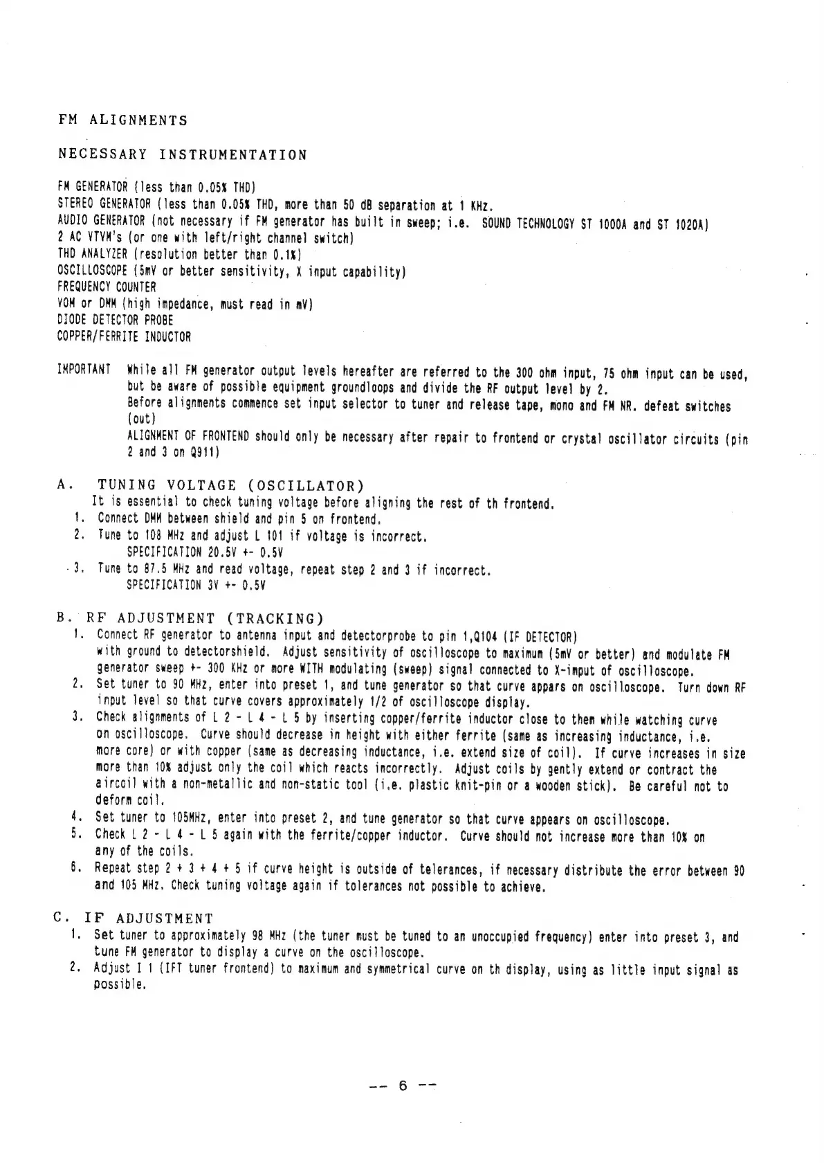 NAD 7220PE - FM Alignment: Oscillator, RF, and IF; Tuning Voltage (Oscillator) Alignment; RF Adjustment (Tracking); IF Adjustment