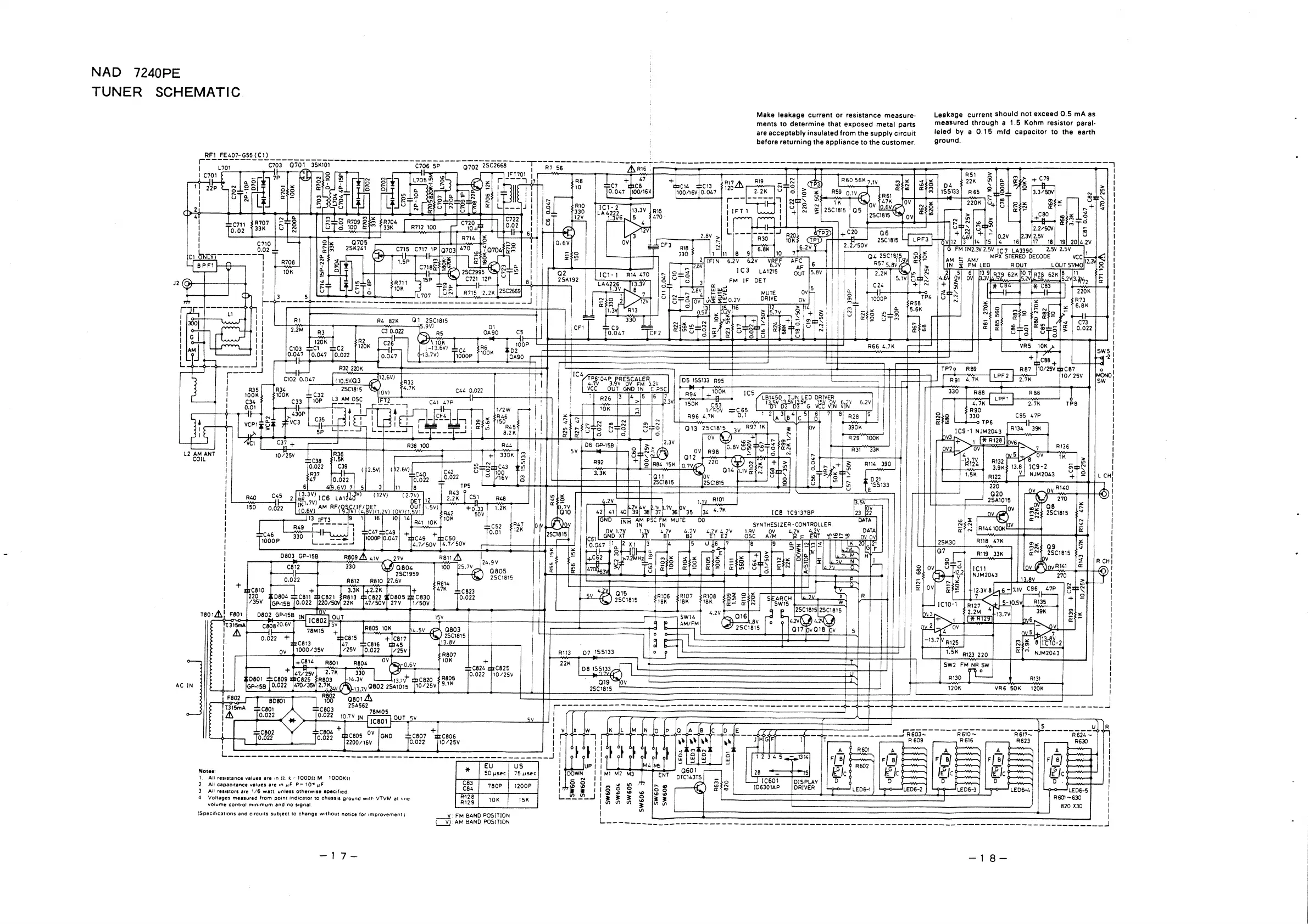 NAD 7240 - Tuner Circuit Schematics; FM Front End and Detector Schematic; MPX and IF Stage Schematic