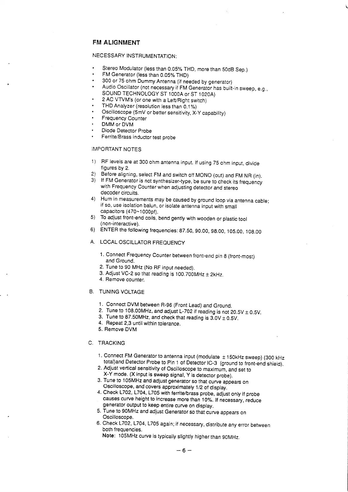 NAD 7240 - FM Tuner Alignment; Local Oscillator Frequency Adjustment; Tuning Voltage Adjustment; Tracking Adjustment