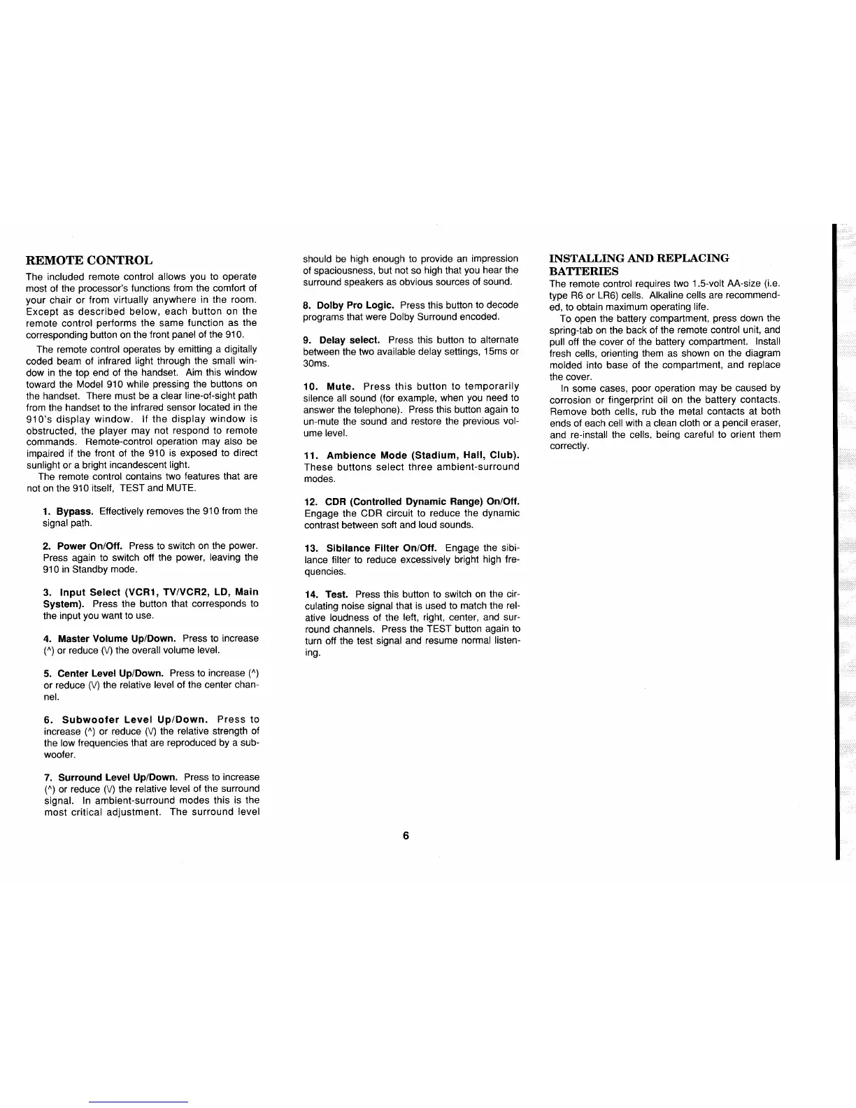 NAD 910 - Bypass; Power On;Off; Input Select; Master Volume Up;Down