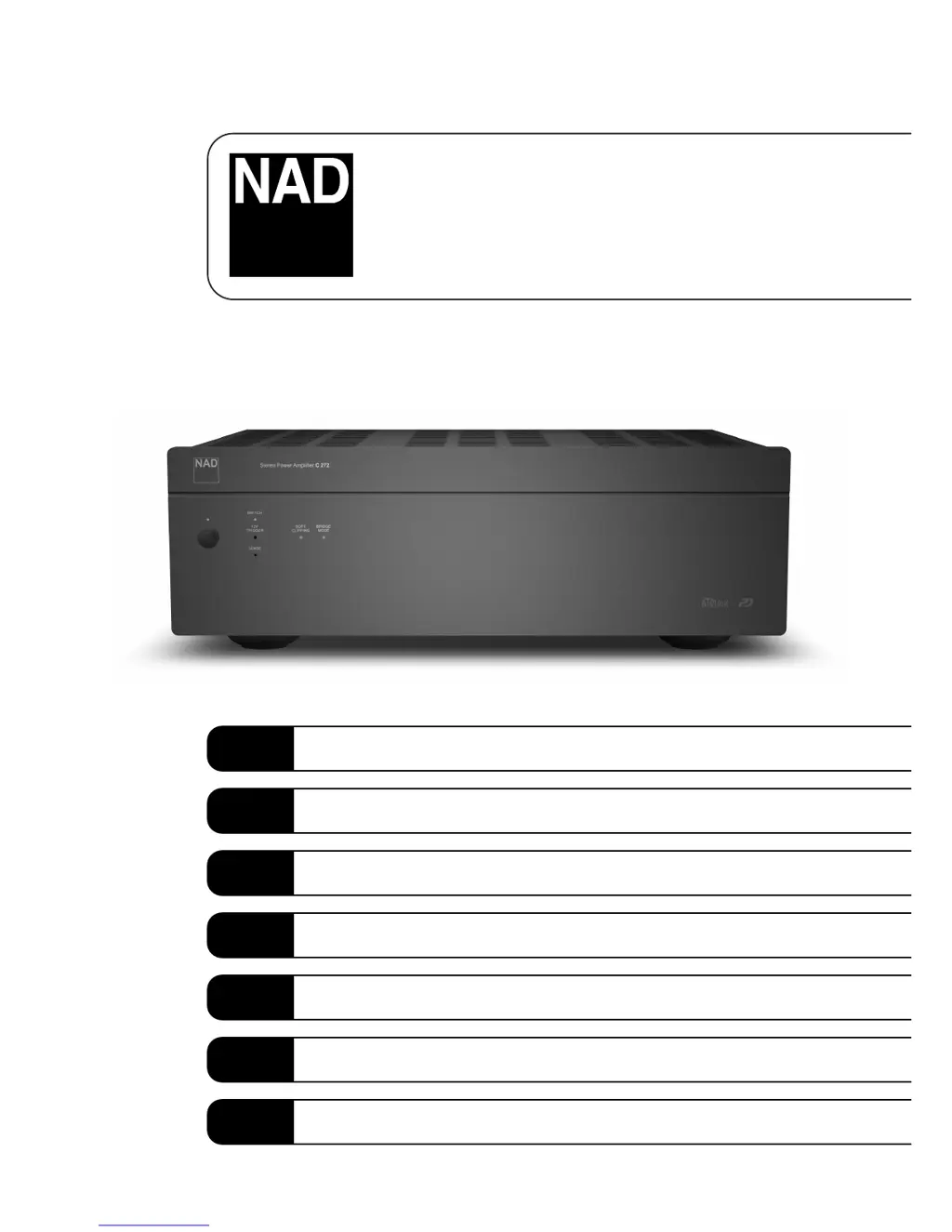 If your NAD Amplifier isn't producing any sound, there are a few things to check: * Ensure the AC power cord is properly plugged in and the power is switched on. * Verify that the Input Select switch is set to the correct active input. * Make sure the Input Level Control isn't turned down too low.