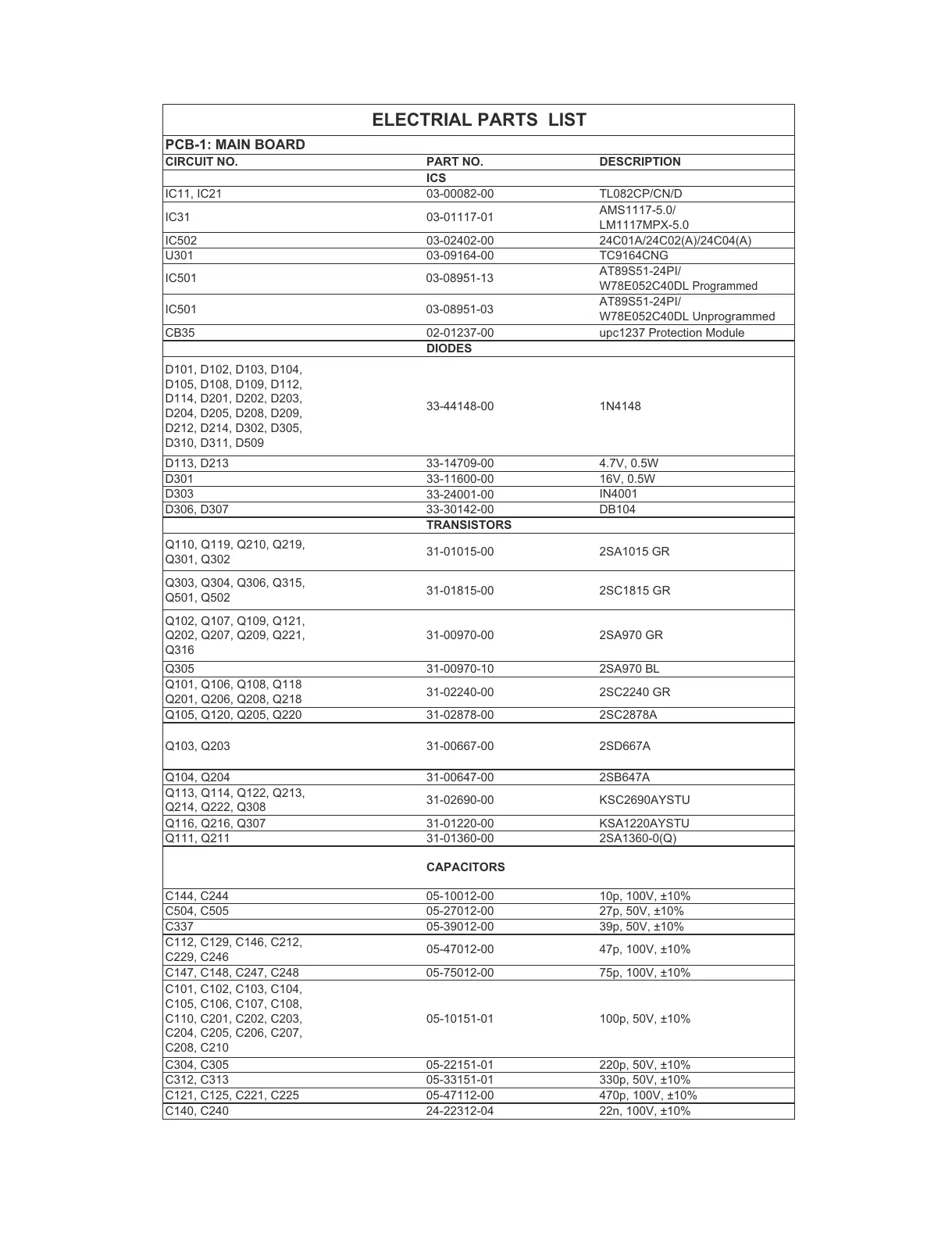 Q116, Q216, Q307 31-01220-00 KSA1220AYSTU