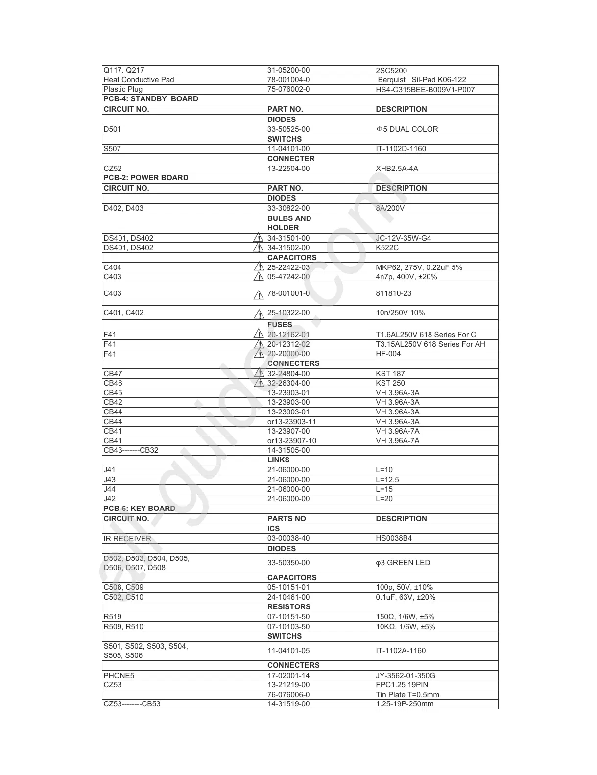 CIRCUIT NO. PART NO. DESCRIPTION