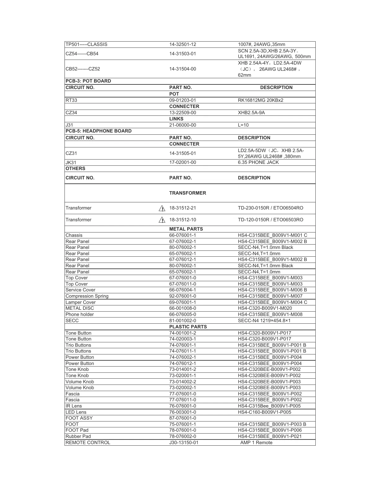 Rear Panel 67-076012-1 HS4-C315BEE_B009V1-M002 B