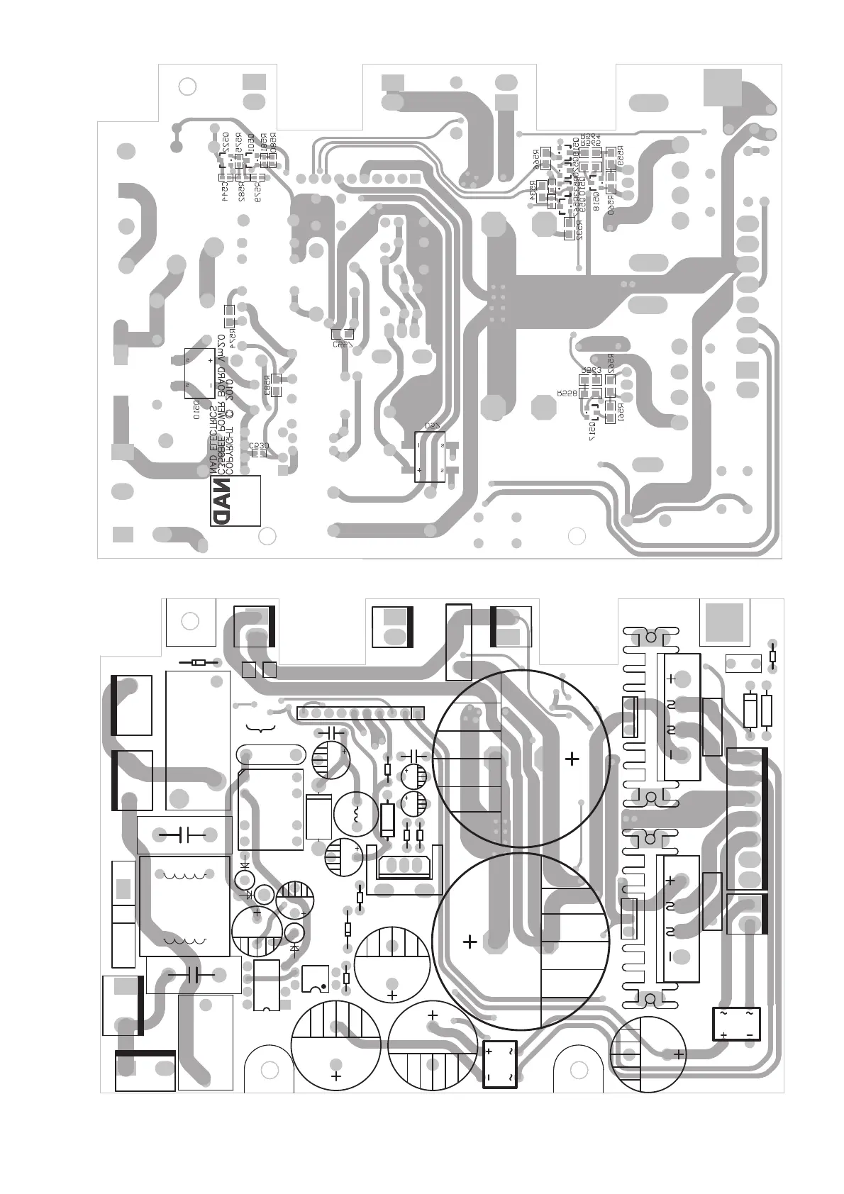 NAD C 356BEE - Power Board Component Layouts (PCB-2); Power Board Top View Layout; Power Board Bottom View Layout