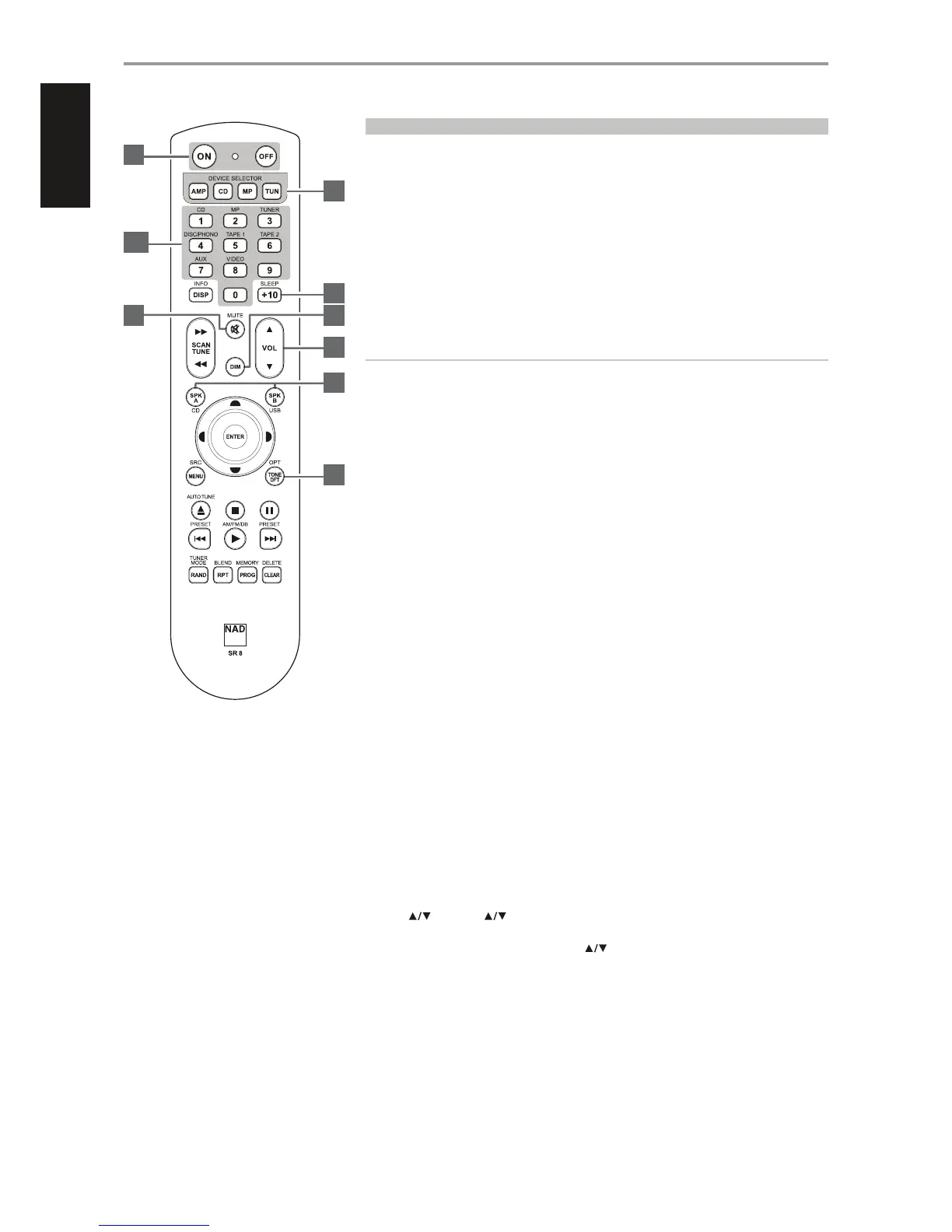 5 SLEEP: Switch o the NAD Receiver or Tuner after a preset number of minutes.