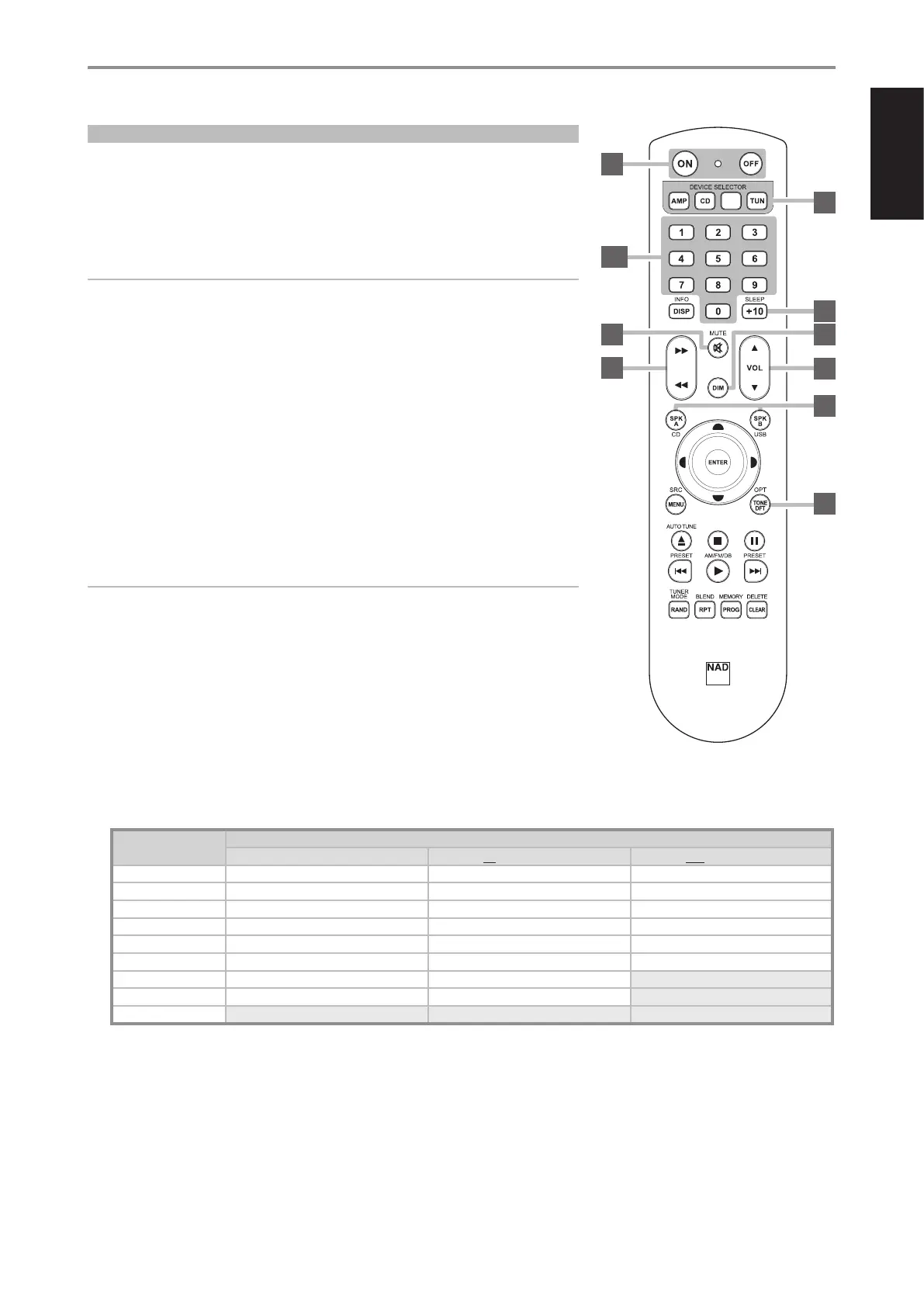 5 SLEEP: Switch o specic NAD Receiver or Tuner models after a preset number of minutes. This